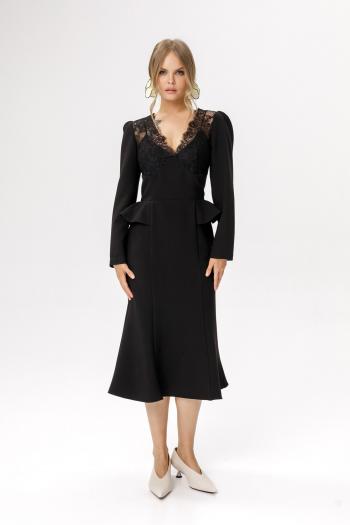 Блузка из хлопкового шитья с V-образным вырезом и втачным рукавом 3/4 со сборкой по окату и внизу на резинке. Полочка с центральной застежкой на завязки. По полочке и спинке по линии талии вставлен волан со сборкой и фигурным низом. Блузка на подкладке из хлопка.