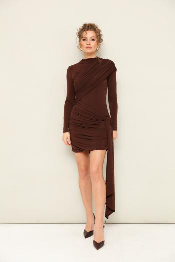 Блузка выполнена из блузочной ткани со стразами. Блузка О-образного силуэта, длиной до линии бедер. Спереди застежка на пришивные пуговицы, частично на потайной планке. Спинка цельная. Воротник стояче-отложной с отрезной стойкой. Плечевой шов заужен. Рукав цельнокроеный, с углубленной проймой. По окату и низу рукава сборка. Низ рукава на манжете, застегивающейся на пуговицу. В боковых швах разрезы.