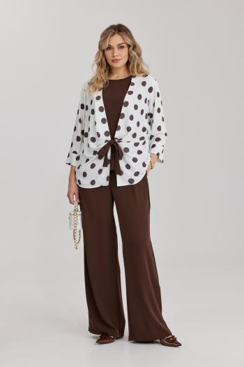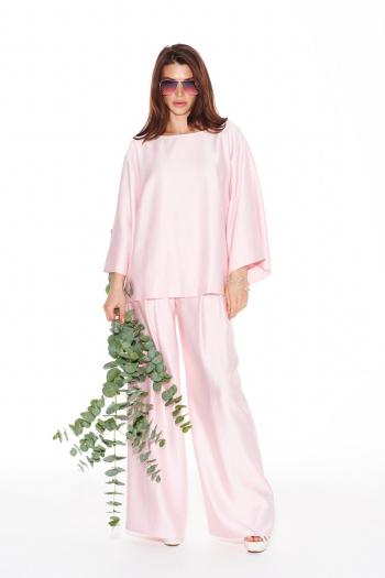 Блузка выполнена из плательно-блузочной ткани. Блузка прямого силуэта, покроя оверсайз, длиной ниже линии бедер. Спереди центральная застежка на пуговицы. Спинка цельная, длиннее переда. Воротник стояче-отложной. Плечевой шов спущен. Рукав рубашечного покроя, двухшовный, с прорезью по переду. Низ рукава на притачной манжете, застегивающейся на пуговицу. В боковых швах разрезы. Длина блузки: р.44-48 - 79 см, р.50-54 -80 см. Длина рукава от горловины: р.44-48 -78 см, р.50-54 -79 см. БЛУЗКА м. 3036 44 46 48 50 52 54 Длина по центру спинки 84 84 84 85 85 85 Длина рукава от горловины 79 79 79 80 80 80 Объем по груди 142 146 150 154 158 162 Объем по талии 140 144 148 152 156 160 Объем по низу 140 144 148 152 156 160 Объем рукава вверху 34 36 38 38 40 42 Объем рукава внизу 23,5 23,5 23,5 25,5 25,5 25,5