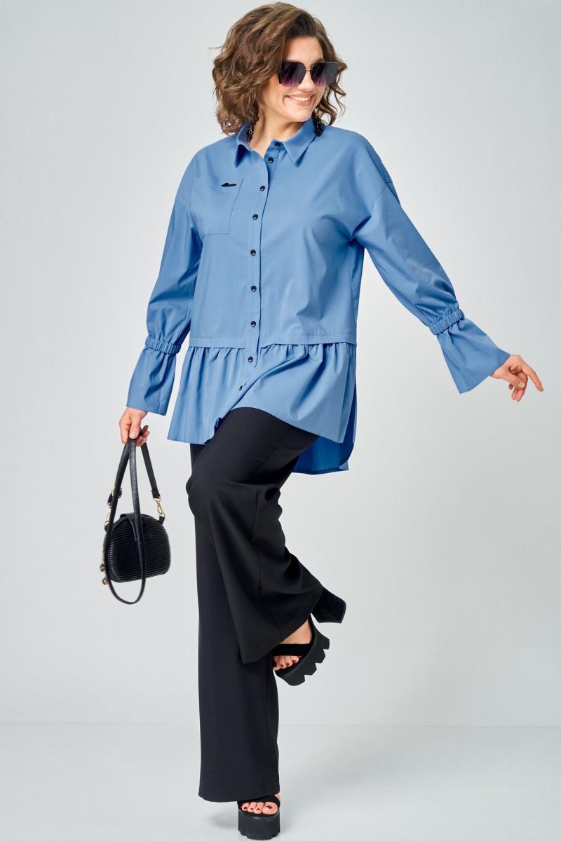 Блузка женская нарядно повседневного элегантного стиля, прямого силуэта с фигурным низом выполнена из шикарного дышащего хлопка. Вырез горловины воротник на стойке рубашечного типа, застежка доверху на обметанные петли и пуговицы. Рукав спущенный, втачной по низу на притачной манжете, в боковых швах обработаны разрезы. На полочке функциональный накладной карман, изящная металлическая бренд лейбл и контрасные пуговицы придают изделию стильный и современный дизайн. Подрез по полочке делает изделие трендом сезона. По спинке фигурная кокетка и встречная складка, создают идеальную посадку. Универсальный силуэт, элегантный крой, стильный дизайн - все детали только подчеркивают достоинства фигуры, а фасон создает трендовый образ.