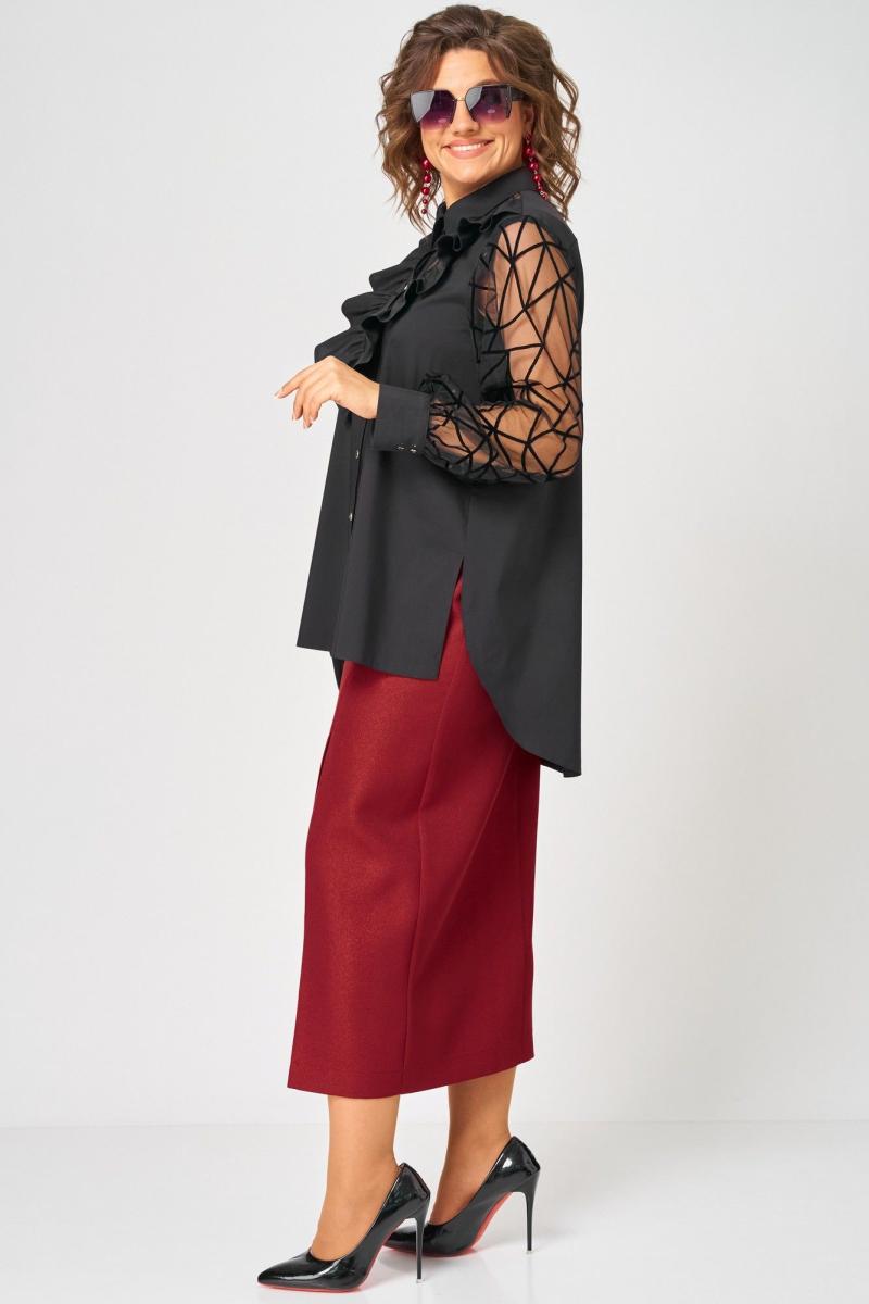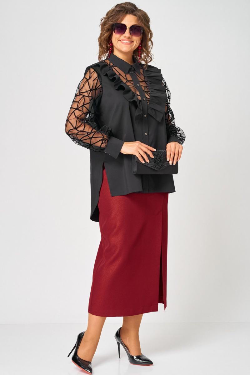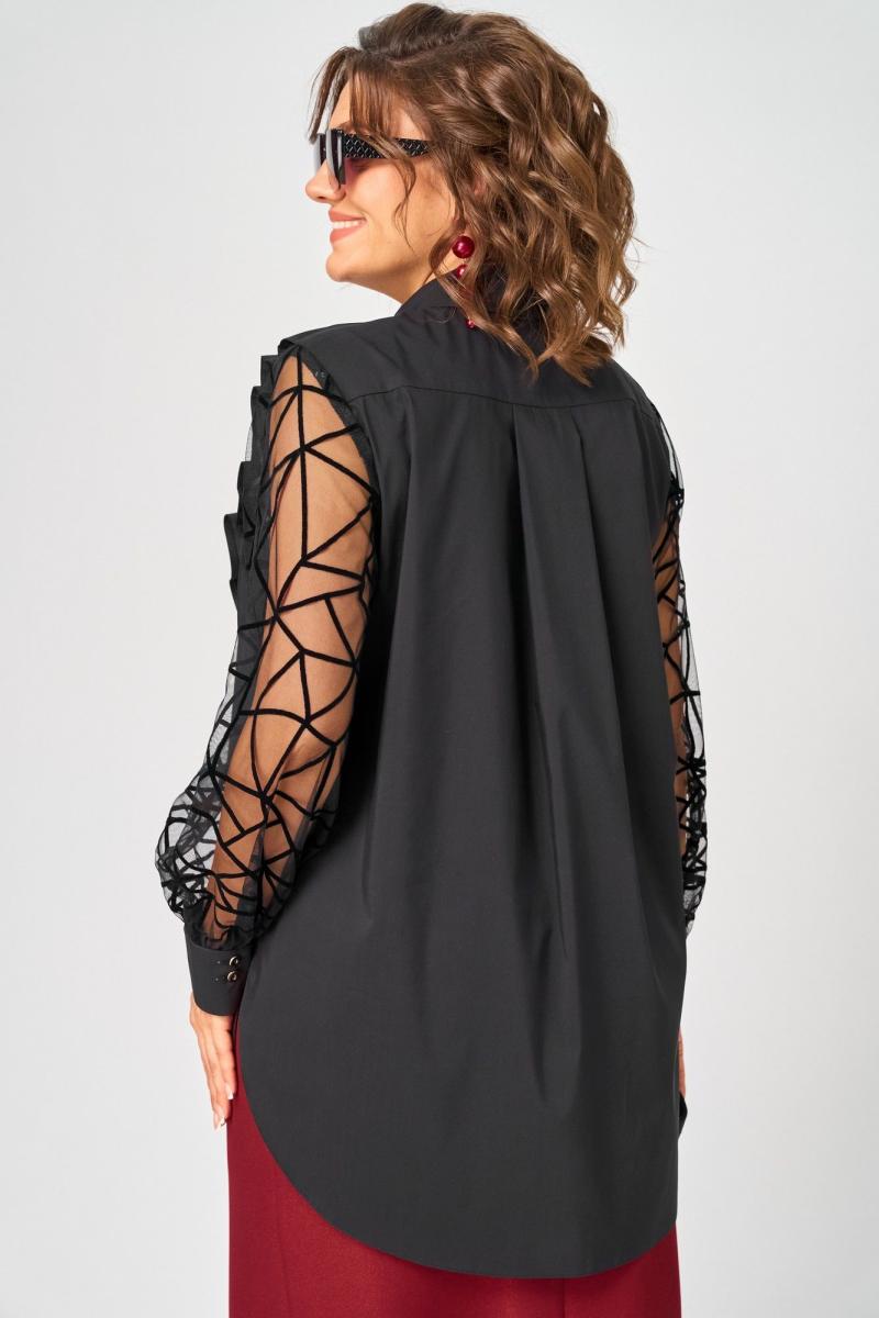 Блуза шикарная женская элегантная нарядная свободного силуэта выполнена из хлопка в сочетании с гипюром (сеткой с флоком). Вырез горловины воротник на стойке рубашечного типа, рукав втачной из гипюра (сетки) по низу на сборке и притачной манжете.Застежка доверху на обметанные петли и пуговицы. По полочке фигурные вставки из гипюра (сетки) с притачной рюшей с двух сторон. Рюша входит в плечо. В боковых швах обработаны разрезы. Низ блузы фигурный. Декором блузы служит дизайн гипюра (сетки) и рюши со сборкой.