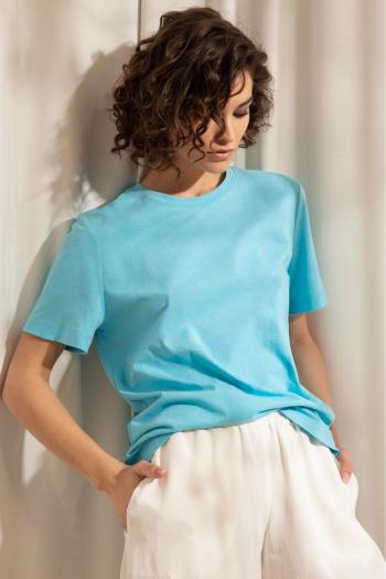 Блузка свободного силуэта из легкой хлопковой ткани. Перед с нагрудными вытачками, застежка на завязках. Рукав втачной одношовный со сборкой по окату и резиночкой по низу. Длина блузки - 45 см, длина рукава блузки - 40 см.