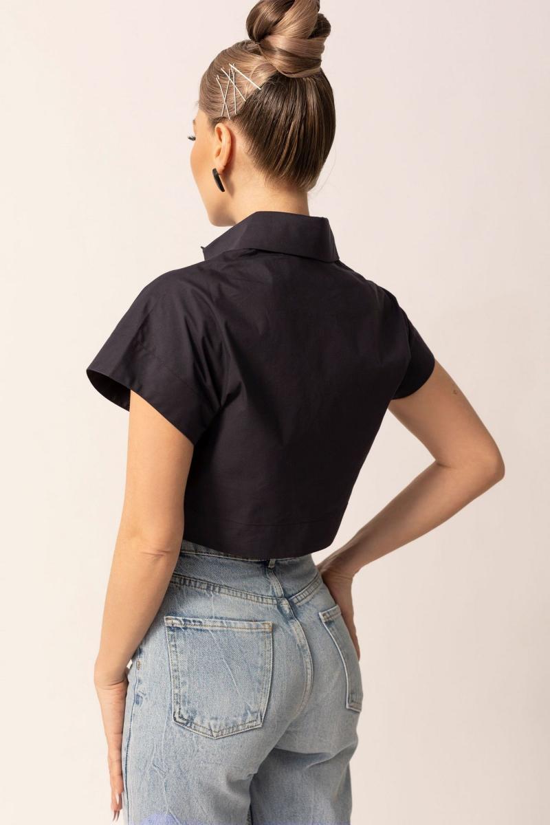 Блузка с центральной застежкой на петли и пуговицы, втачным воротником с отрезной стойкой. По переду с накладными карманами. Плечо спущенное. Спинка цельная.