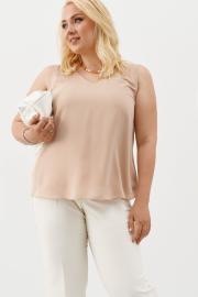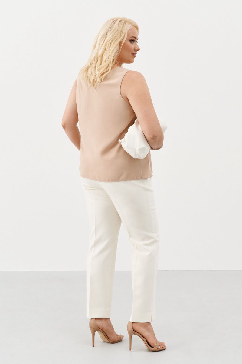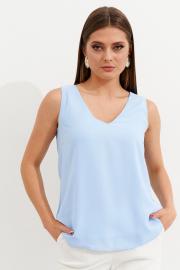 Блузка свободного силуэта из однотонной ткани без рукава на вискозной подкладке. Красивая легкая блузка, слегка расширенная к низу. Стильная вещь, которая отлично сочетается с жакетами, пиджаками и кардиганами. Однотонная блузка станет основой вашего гардероба и разнообразит комплекты повседневной одежды, а также может стать частью вечернего образа.
