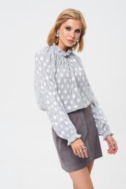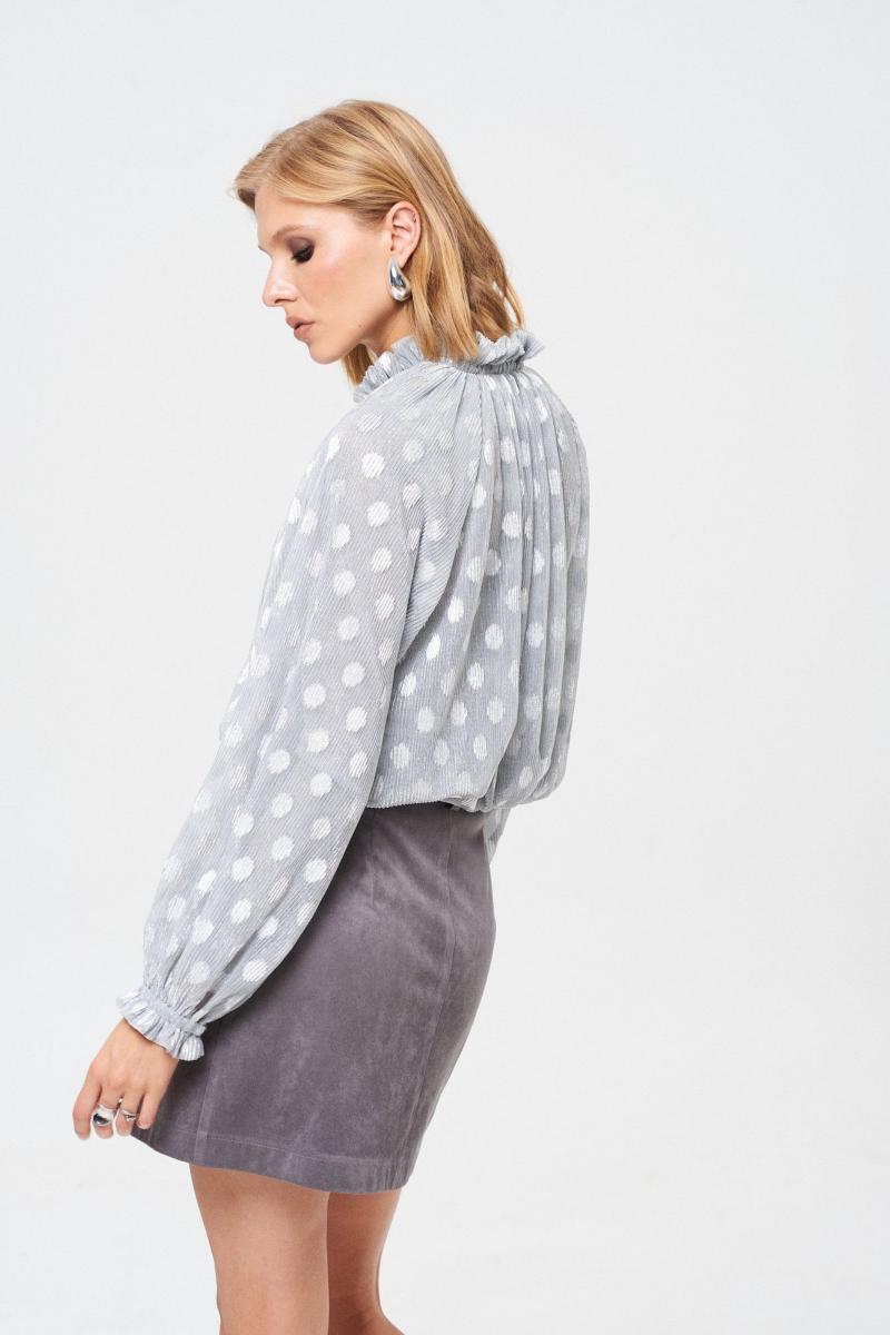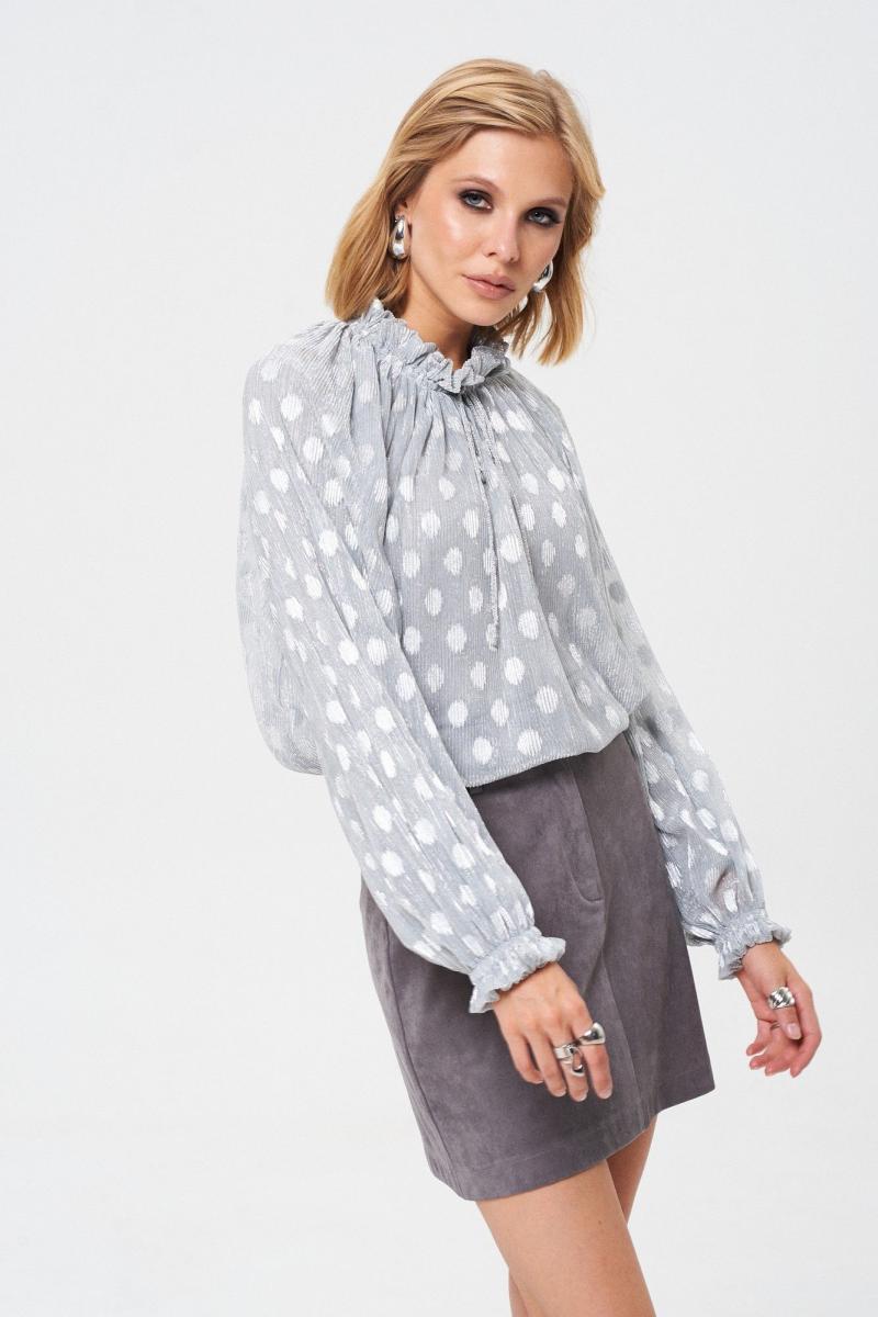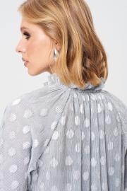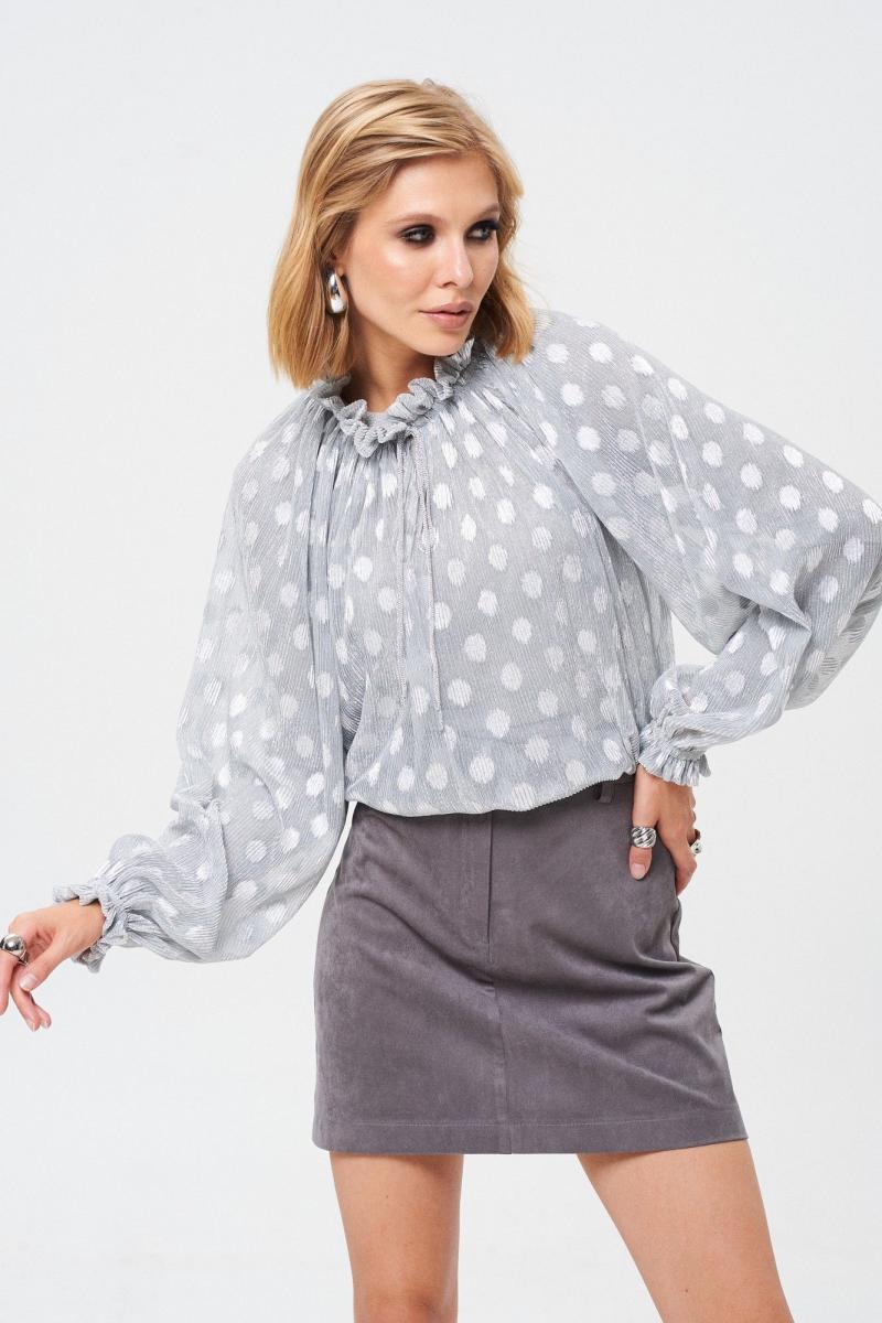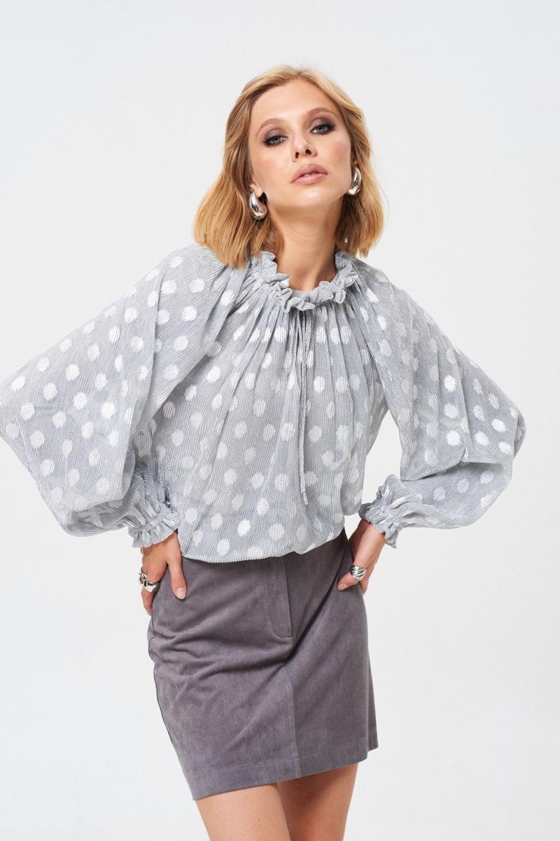 Блуза из летящей легкой полупрозрачной ткани плиссе. Длина блузы 62 см Длина рукава от воротника 73 см. ОГ 42-44 р-р - 132 см, 46-48 р-р - 140 см, 50-52 р-р - 148 см. Состав ПЭ 76%, вискоза 20%, спандкс 4%.