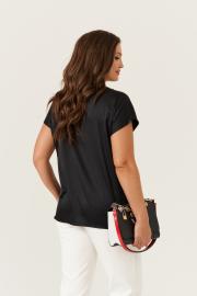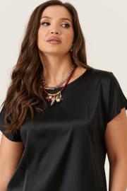 Эта женская базовая блуза прямого силуэта чёрного оттенка — универсальный и стильный выбор для вашего гардероба. Она отлично сочетается с юбками, брюками и джинсами, создавая разнообразные образы для повседневной носки. Легкая и комфортная, блуза выполнена из приятной на ощупь ткани с гладкой поверхностью, которая не парит даже в жаркую погоду. Свободный крой с опущенной линией плеча и короткими цельнокроеными рукавами обеспечивает безупречную посадку и комфорт. Обработанная узкой планкой горловина придает изделию аккуратный вид. Ее легко стирать в машинке, она быстро сохнет и сохраняет форму после стирки. Купите эту блузу и создавайте множество стильных образов для любого дня!