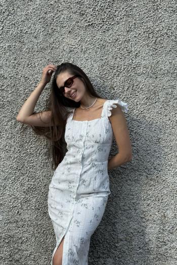 Блуза из хлопковой ткани для повседневной носки. Изделие прямого кроя с фронтальной застежкой по переду, настрочной деталью по груди. Рукав длинный втачной, оформлен притачной манжетой, застегивающейся на пуговицы. Блуза классической длины с разрезами в боковых швах от низа.