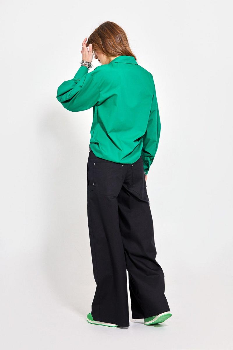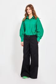 Блуза: - полуприлегающий силуэт - спущенная линия плеча - застёжка на пуговицы по потайной планке - рукава двухшовные с манжетами - воротник рубашечный.