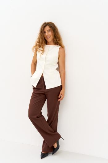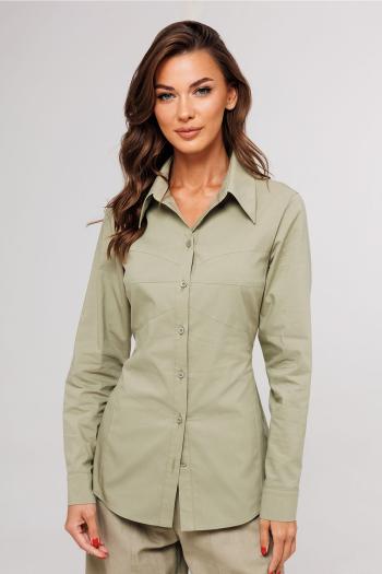 Блузка прямого силуэта. Воротник рубашечный. Вырез горловины V-образный. Застежка на воротнике на петлю и пуговицу. Рукав прямой с манжетой по низу. Манжета с застежкой на петлю и пуговицу. Воротник и манжеты выполнены из отделочной ткани. 44 р-р: ОГ - 104 см., ОТ - 104 см., ОБ - 108 см. 46 р-р: ОГ - 108 см., ОТ - 108 см., ОБ - 112 см. 48 р-р: ОГ - 112 см., ОТ - 112 см., ОБ - 116 см. 50 р-р: ОГ - 116 см., ОТ - 116 см., ОБ - 120 см.