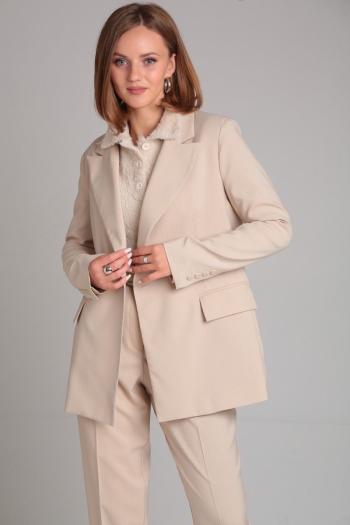 Блузка прямого силуэта. Вырез горловины V-образной формы. Воротник рубашечный. По горловине спинки мягкая складка. В комплекте съемный шарф, фиксирующийся на воротнике на петли и пуговицы. Рукав прямой с притачной манжетой. Манжета с застежкой на петлю и пуговицу.