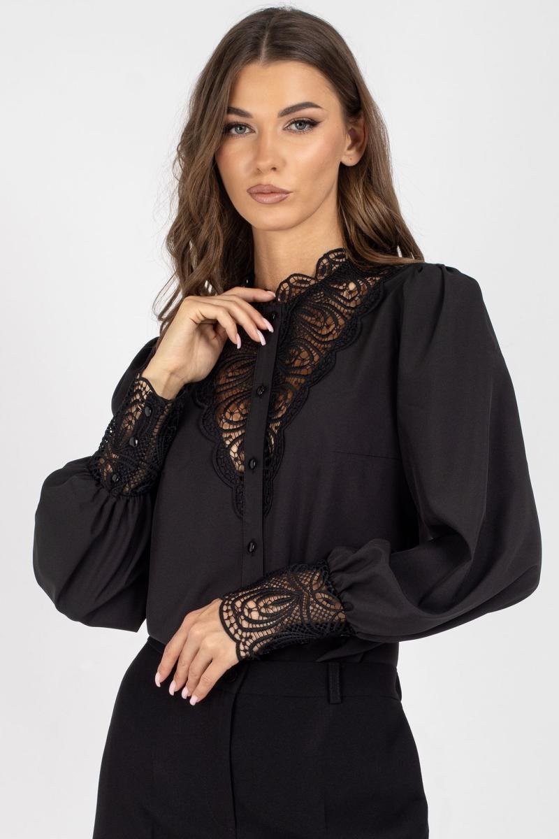 Горловина блузы с притачной стойкой из кружева.
