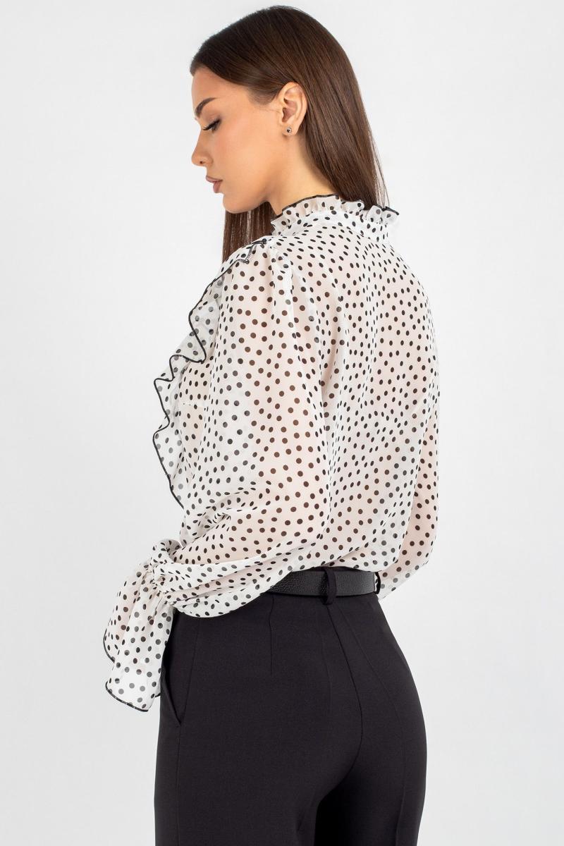 Такая блузка легко комбинируется с разными элементами гардероба: её можно носить с классическими брюками, юбкой‑карандашом или джинсами с высокой талией. Лёгкий шифон приятен к телу, хорошо пропускает воздух и не вызывает дискомфорта в течение дня — идеальный выбор для тёплого сезона. Создавайте неповторимые образы, подчёркивающие вашу индивидуальность и чувство стиля.