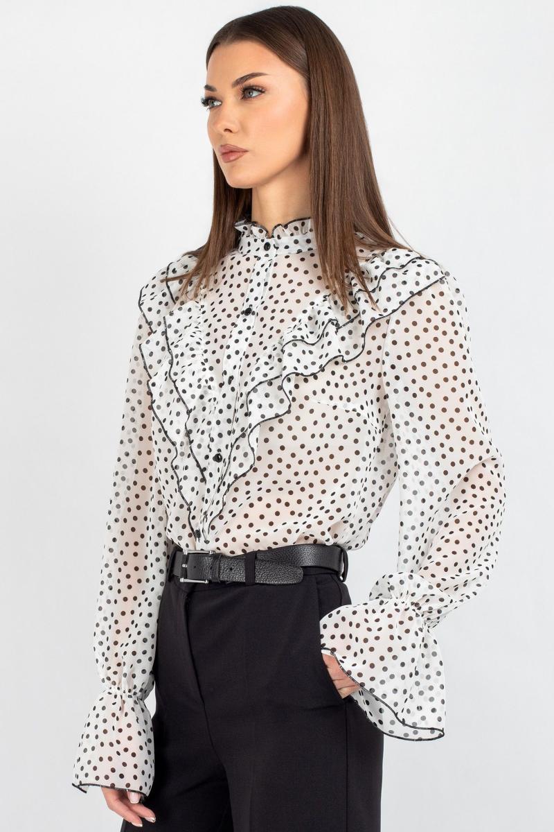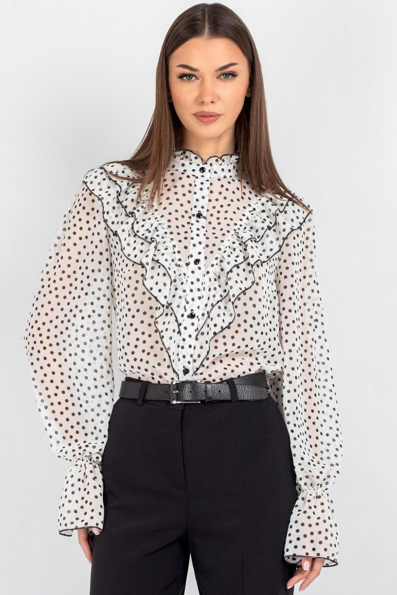 Блузка из лёгкого шифона — идеальное решение для создания как повседневных, так и деловых образов. В современном мире женской моды блузки с принтом остаются неизменно актуальными: они помогают выделиться из толпы, подчеркнуть индивидуальность и добавить яркости даже самому сдержанному гардеробу. Полуприлегающий силуэт этой модели выгодно подчёркивает фигуру, не сковывая движений, — а значит, она подойдёт для самых разных ситуаций: от офисной встречи до вечернего выхода.