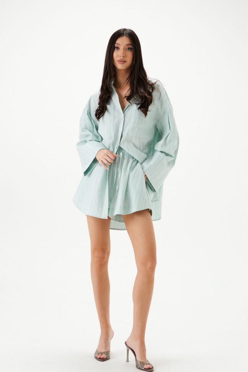 Шорты выполненные из хлопкового полотна. Характеристики: широкие, короткие, пояс притачной, присборен на резинку. Имеет две отделочные строчки по краям, образующие кулису, в которую продет шнур-завязка. В боковых швах карманы с отрезным бочком. Низ обработан в подгибку с закрытым срезом. Длина 32 см