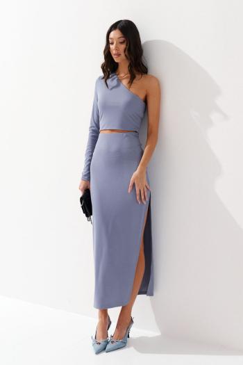 Брюки свободного кроя. Выполнены из текстильного полотна белого цвета в мелкий горошек. В боковых швах карманы с отрезным бочком. Пояс на резинке. На Поясе имеются декоративные строчки. По переду имеется имитация застёжки на 3 пуговицы. Длина 105 см