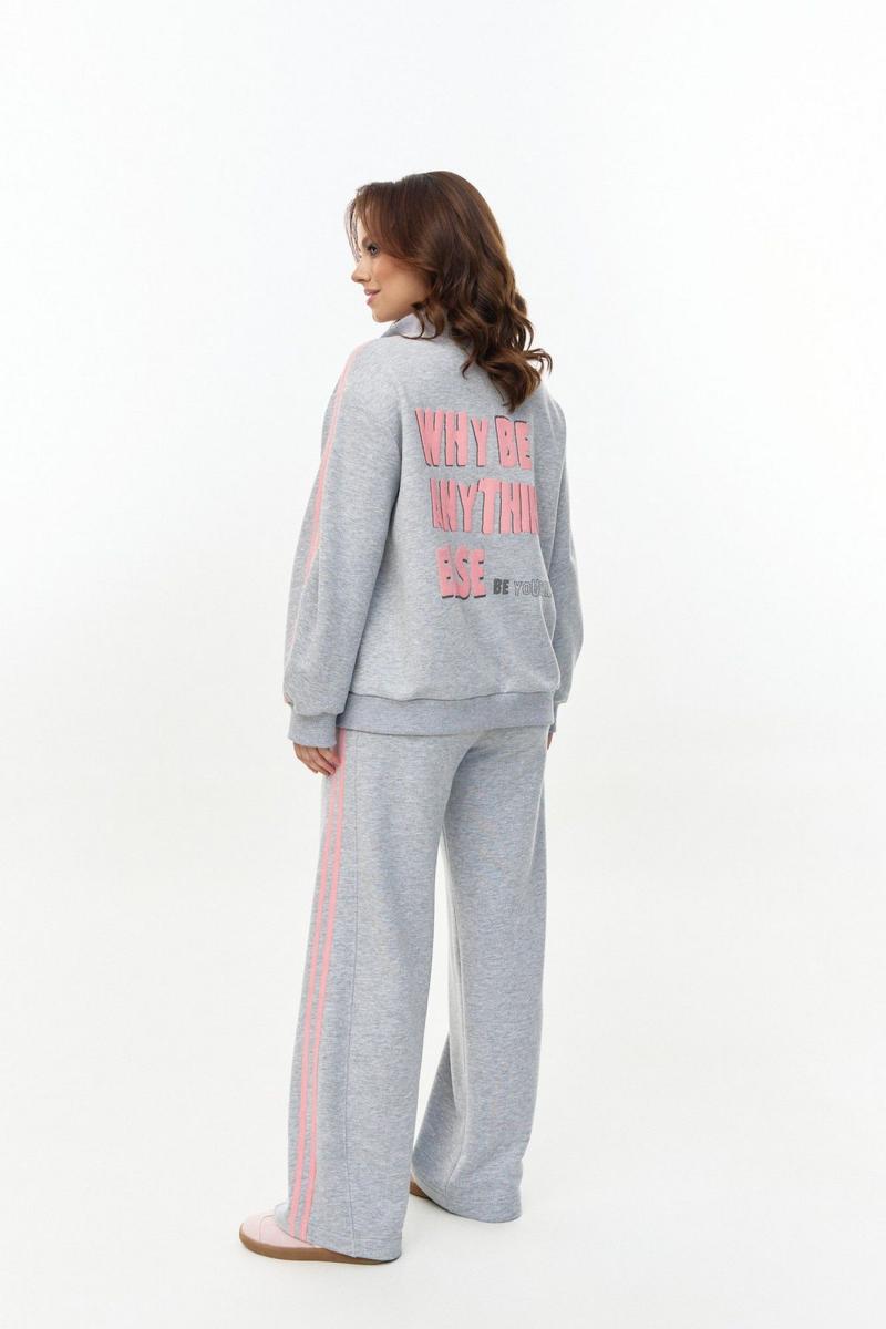 Джоггеры из футера 3-х нитки, актуальной силуэтной формы "подковы". Пояс из кошкорсе- компаньона с резинкой. Карманы в швах. Боковая вставка с декоративными лампасами.