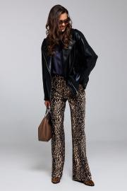 Брюки, расширенные к низу. На приточном поясе со шлёпками, застежкой-гульфик и одной петлей-пуговицей на поясе. Спереди карманы, сзади кокетка и накладные карманы.