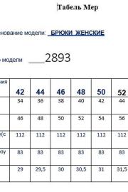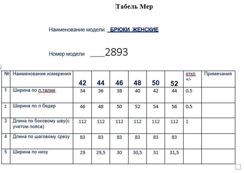 Таблица размеров