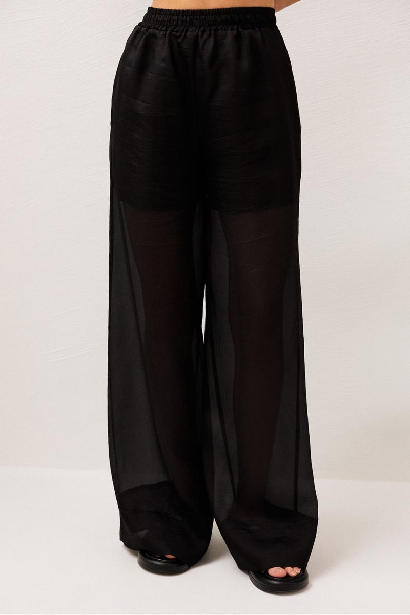 Брюки прямого силуэта на притачном, отстроченном поясе на резинке. С карманами в боковых швах. Верхняя часть брюк на подкладке из основной ткани.