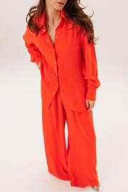 Брюки широкие с притачным поясом на резинке и карманами по боковым швам.