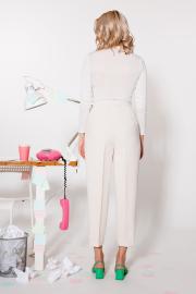 Брюки-бестселлер — зауженные, со стрелками, задающими четкую вертикальную линию, универсальной укороченной длины. Выполнены из смесовой костюмной вискозы с гладкой фактурой. Такую модель можно стилизовать как для вечера, так и для повседневных образов — с изящными босоножками на каблуке или туфлями на плоской подошве.