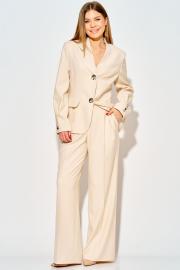 Детали передних половинок с изящными складками по талии, наклонные боковые карманы добавляют практичности. На задних частях брюки оформлены аккуратными вытачками. Заутюженные канты на передних и задних половинках добавляют строгости и стиля, а пять шлёвок на поясе-кокетке позволяют легко сочетать брюки с вашим любимым ремнем.