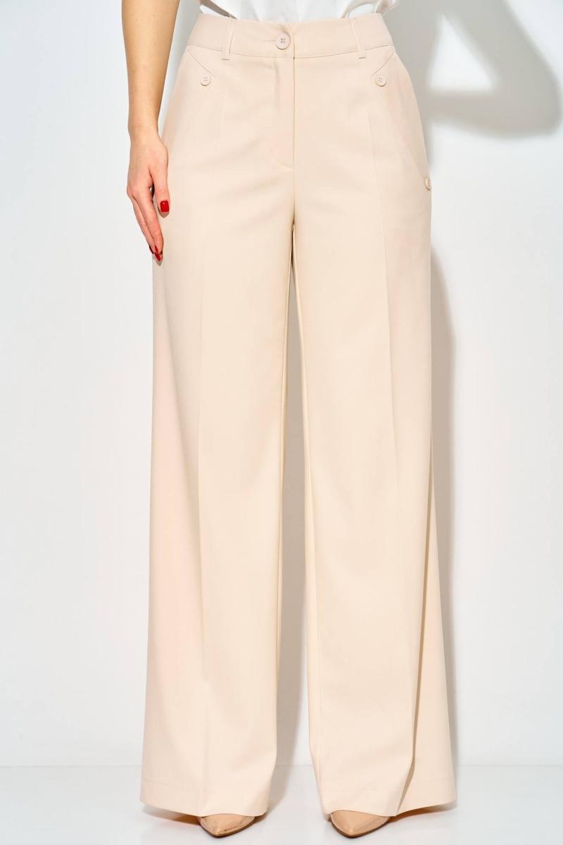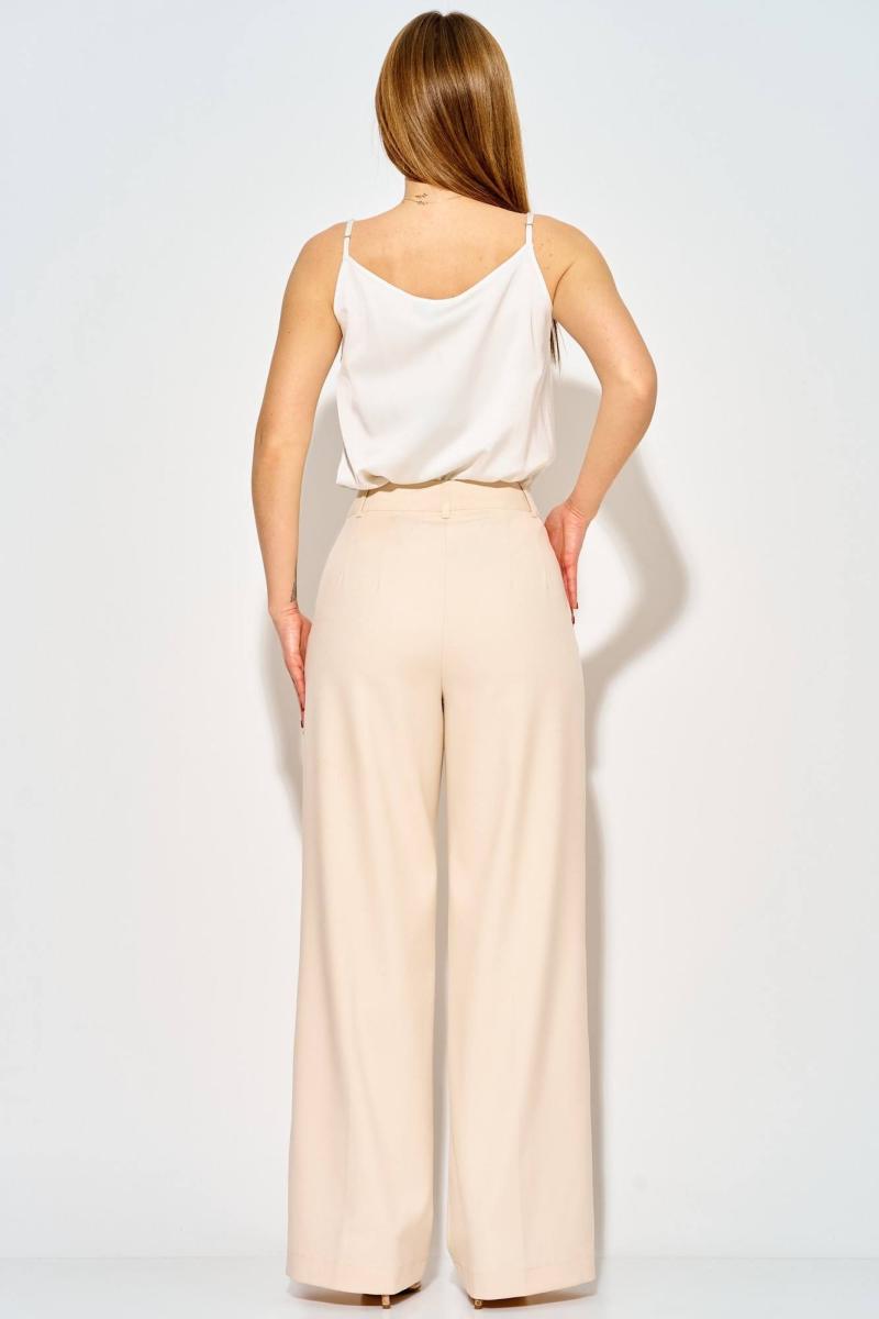 Стильные широкие брюки от LAIKONY . Брюки плотно облегают вверху и расширенные к низу, с притачным поясом-кокеткой со шлевками. Застежка на тесьму-молнию и 1 петлю и пуговицу. На передних частях брюк в боковых швах обработаны наклонные карманы с широкими листочками с втачными концами, на которых декоративно прикреплены по 2 пуговицы. На задних частях брюк обработаны вытачки. На передних половинках брюк заутюжены канты. Длина брюк по боковму шву с поясом 111 см. Наши модные брюки составят незаменимую часть вашего базового гардероба. На фото с нашим топом L-037-3.