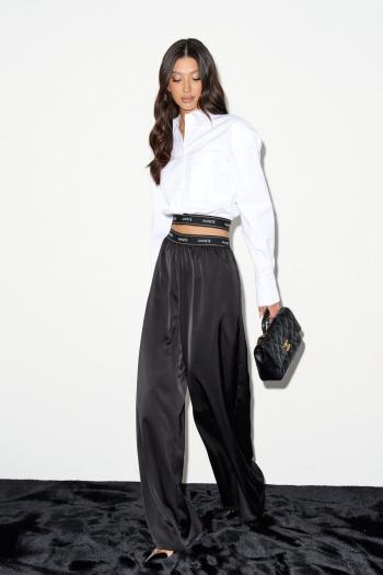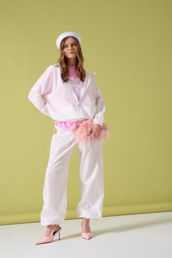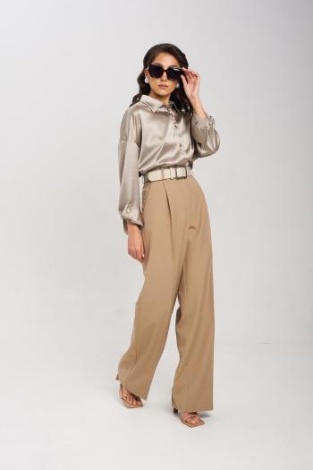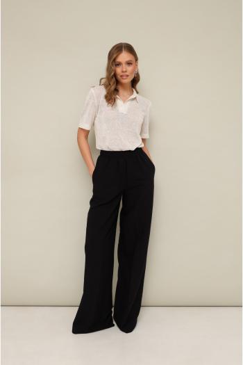 Брюки из вискозного полотна. Пояс на резинке дополнительно кулиса со шнуром. В боковых швах карманы и серебристый кант. Длина брюк 111 см. ОТ 42 р-р 64-66 см, 44 р-р 68-70 см, 46 р-р 72-74 см, 48 р-р 76-78 см. Соста 100% вискоза