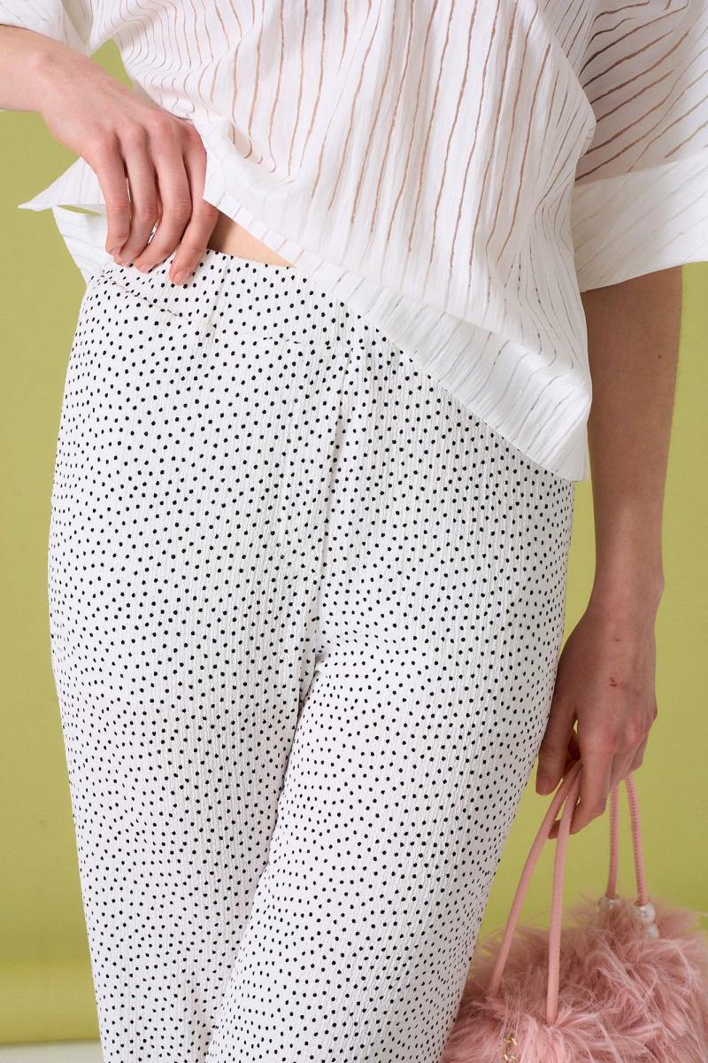Брюки свободного силуэта с актуальным принтом. Пояс на резинке. Ткань эластичная. Длина брюк 110 см. 42 р-р ОТ 65-67 см, ОБ 87-89 см. 44 р-р ОТ 69-71 см, ОБ 91-93 см. 46 р-р ОТ 73-75 см, ОБ 95-97 см. 48 р-р ОТ 77-79 см, ОБ 99-103 см Состав 100% ПЭ