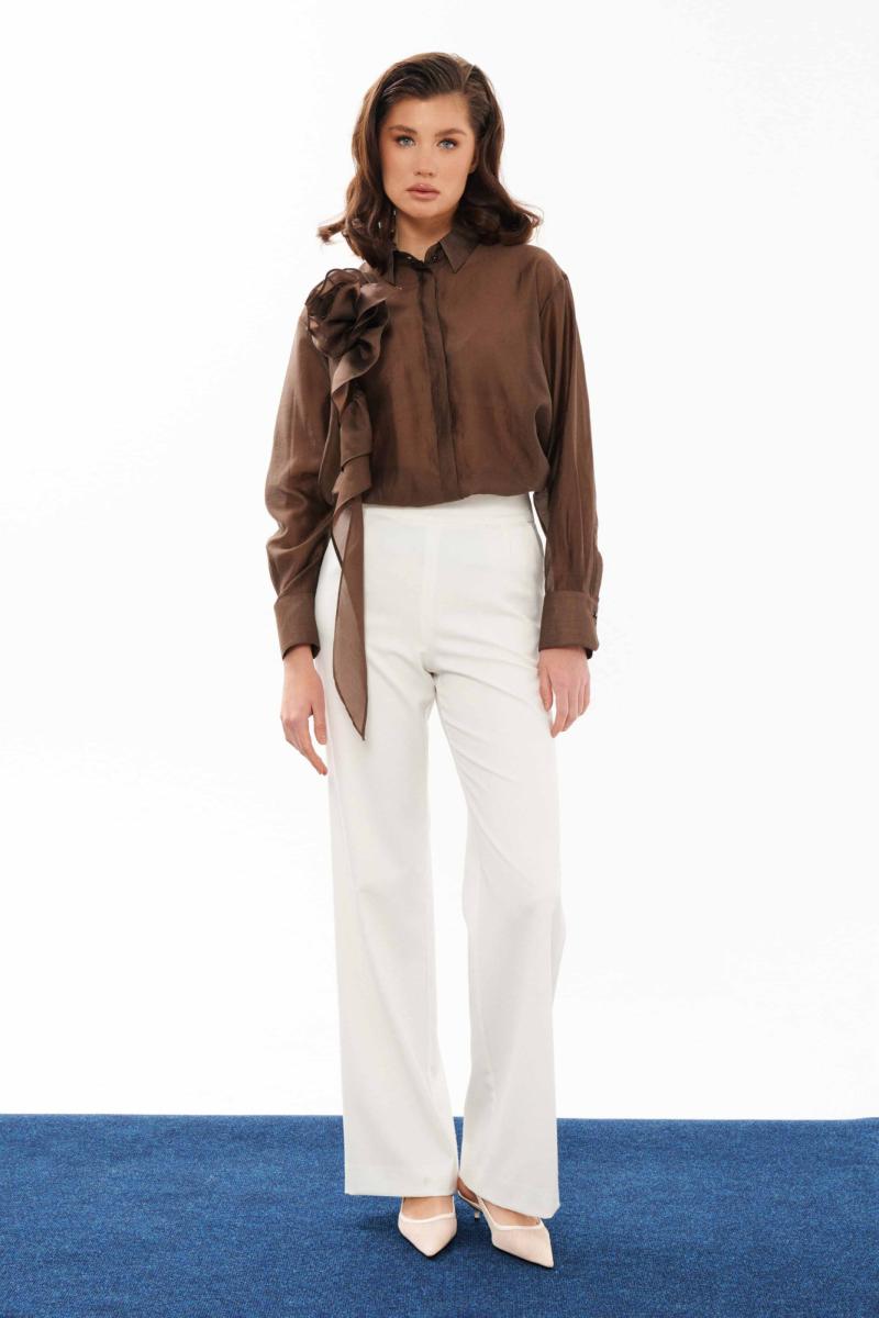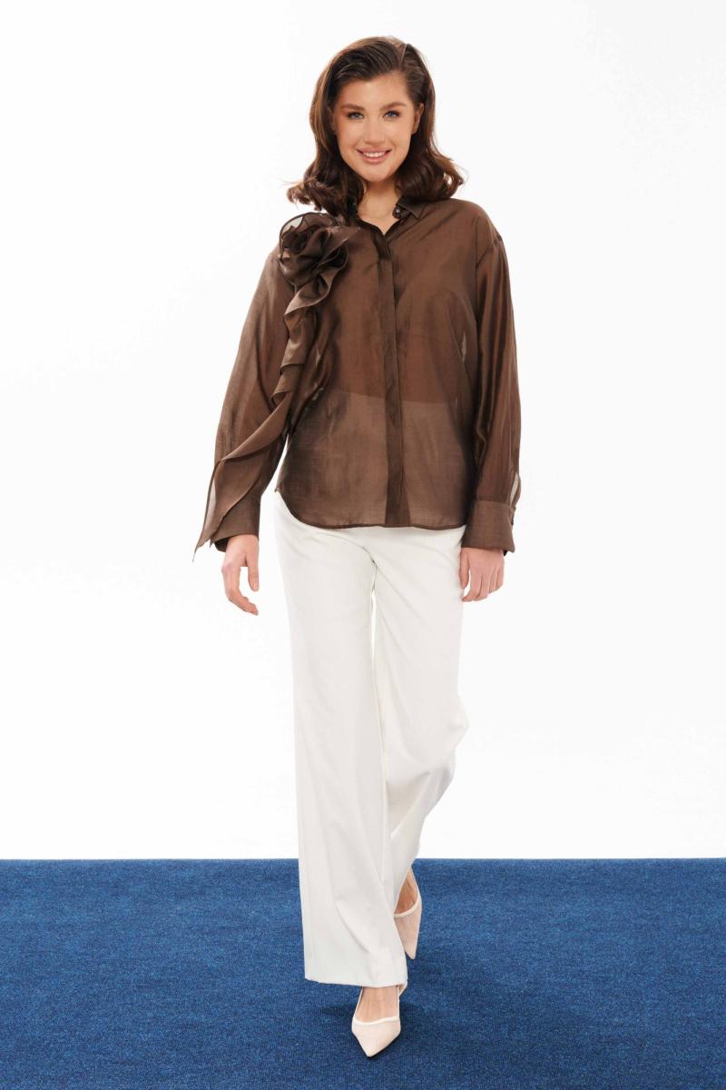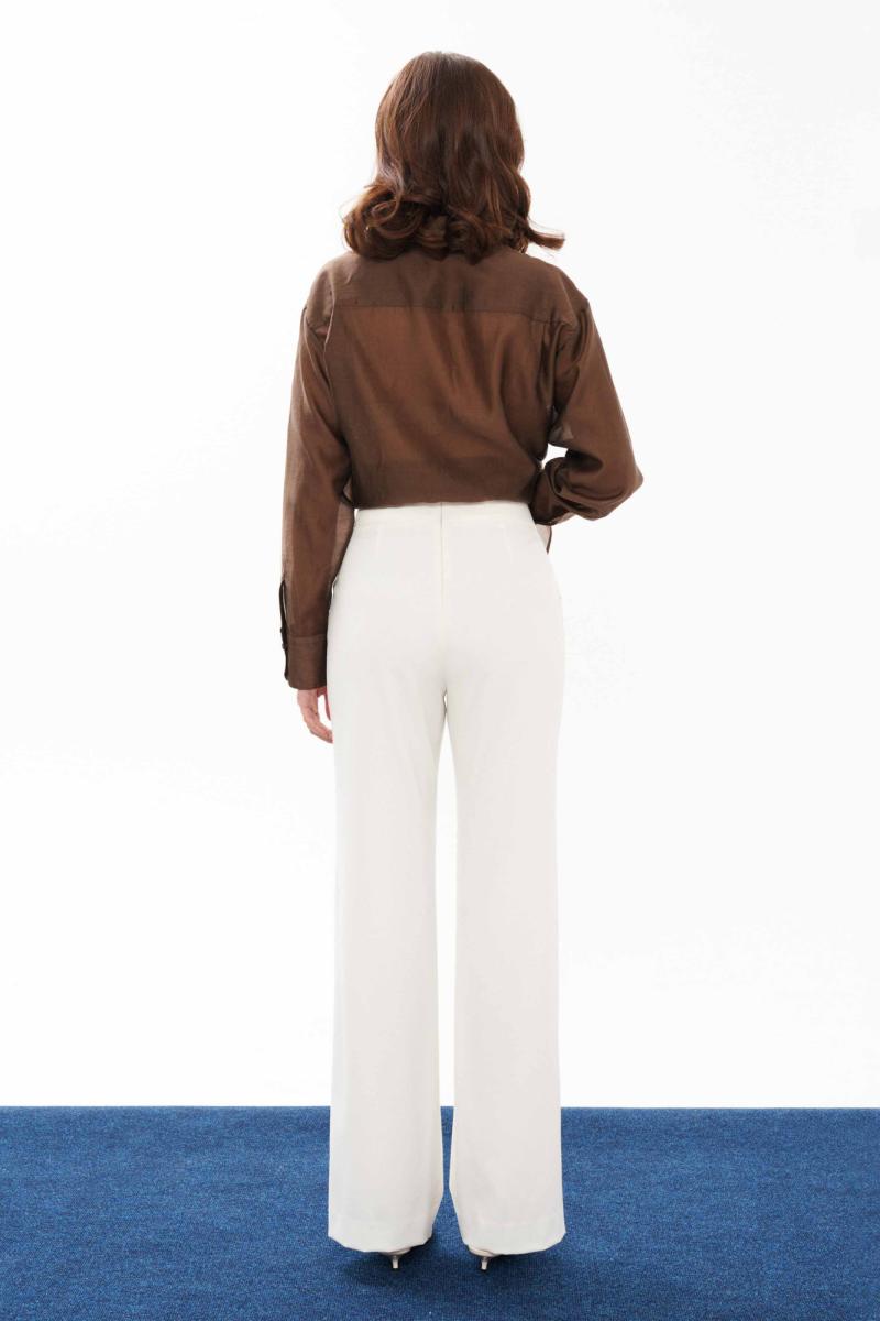 Брюки женские прямые из смесовой ткани для повседневной носки. Верхний срез брюк обработан обтачкой, застежка на тесьму-молнию в среднем шве задней части брюк. Передняя часть брюк имеет талиевые вытачки. Задняя часть брюк имеет талиевые вытачки. В брюках расположен в боковом шве карман с подкройным бочком. Отличный классический вариант брюк, которые будут гармонично смотреться под любые изделия.