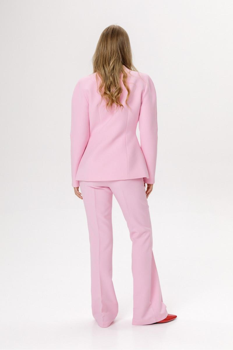 Брюки-клеш со стрелками. Детали: притачной пояс со шлевками, передние половины с заутюженными стрелками, застежка на молнию и потайные крючки, боковые карманы. Задние части брюк с вытачками и заутюженными стрелками. Пояс брюк без резинки. Длина по боковому шву с поясом около 112 см в размерах 40-46 и около 115,5 см в размерах 48-52. Длина по внутреннему шву около 82 см. Розовый, еловый (приобрести жакет с фото можно по арт. 6291), темно-синий (приобрести жакет с фото можно по арт. 6368, 6602), белый (приобрести жакет с фото можно по арт. 6291, 6368, 6539, 6540, 6573), персиковый и коричневый (приобрести жакет с фото можно по арт. 6539, приобрести жакет с баской с фото можно по арт. 6540), оливковый (приобрести жакет с фото можно по арт. 6573), черный (приобрести жакет с фото можно по арт. 6573)