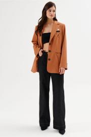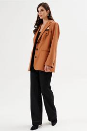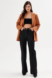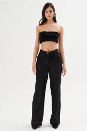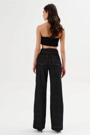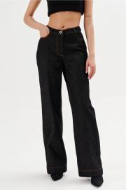 Джинсы женские, палаццо. По задним половинкам кокетки и накладные карманы. По передним половинкам есть карманы. Застежка обработана по переду с гульфиком и откоском на молнию. Брюки на притачном поясе со шлевками.