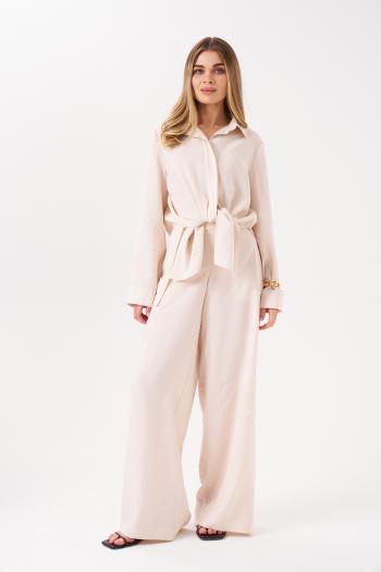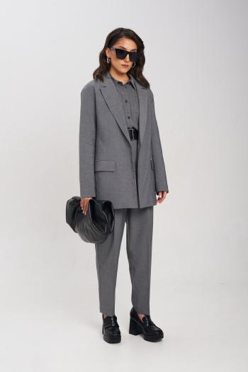 Брюки прямые из джинсовой ткани. Верх на притачном поясе со шлевками. Застежка по переду на молнию и пуговицу на поясе. На переде боковые карманы. На задних частях кокетка и карманы. На заднем кармане выполнена вышивка.
