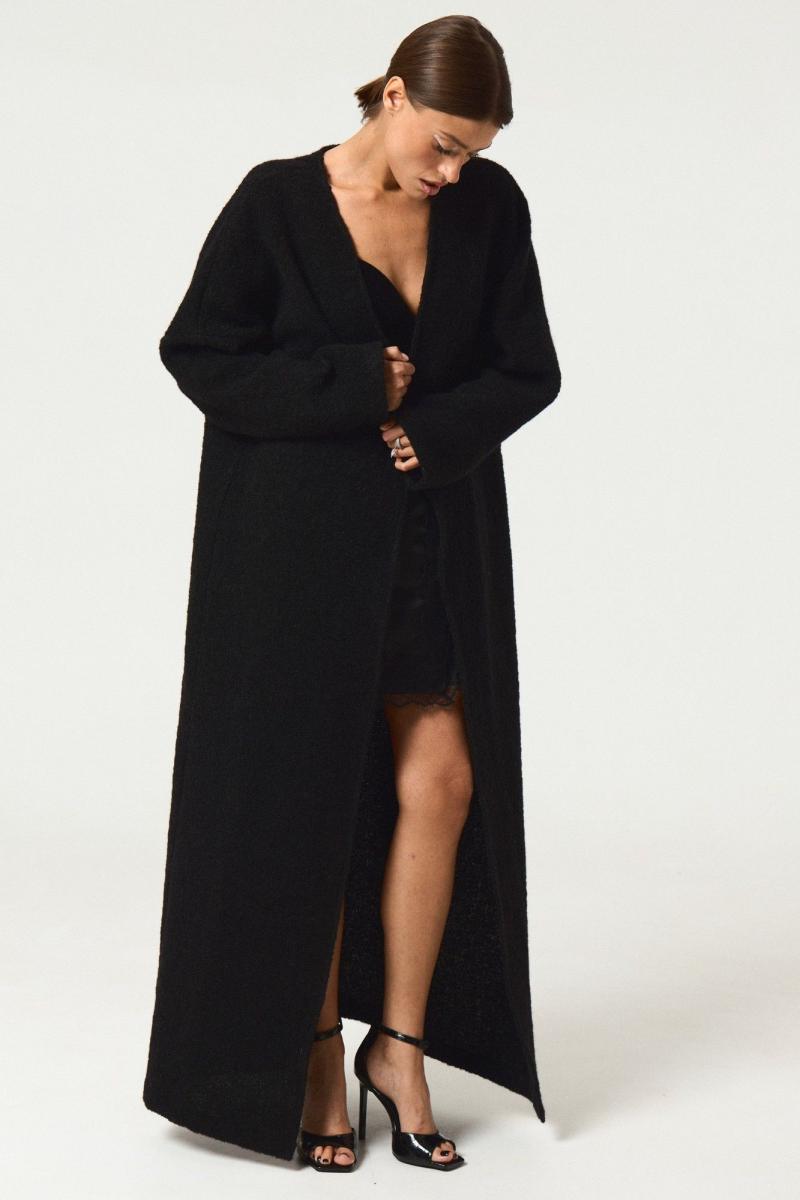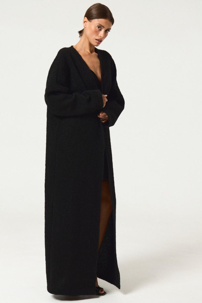 Кардиган прямого силуэта. Застежка на одну пуговицу. Длина макси