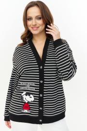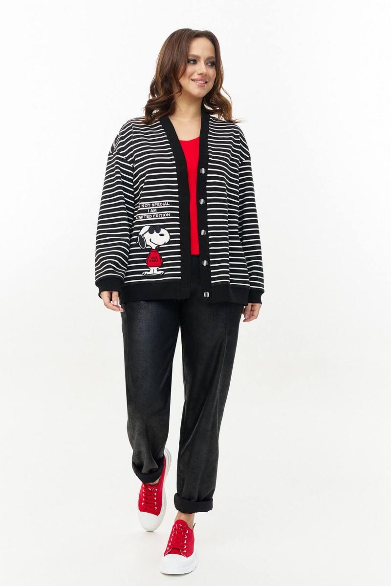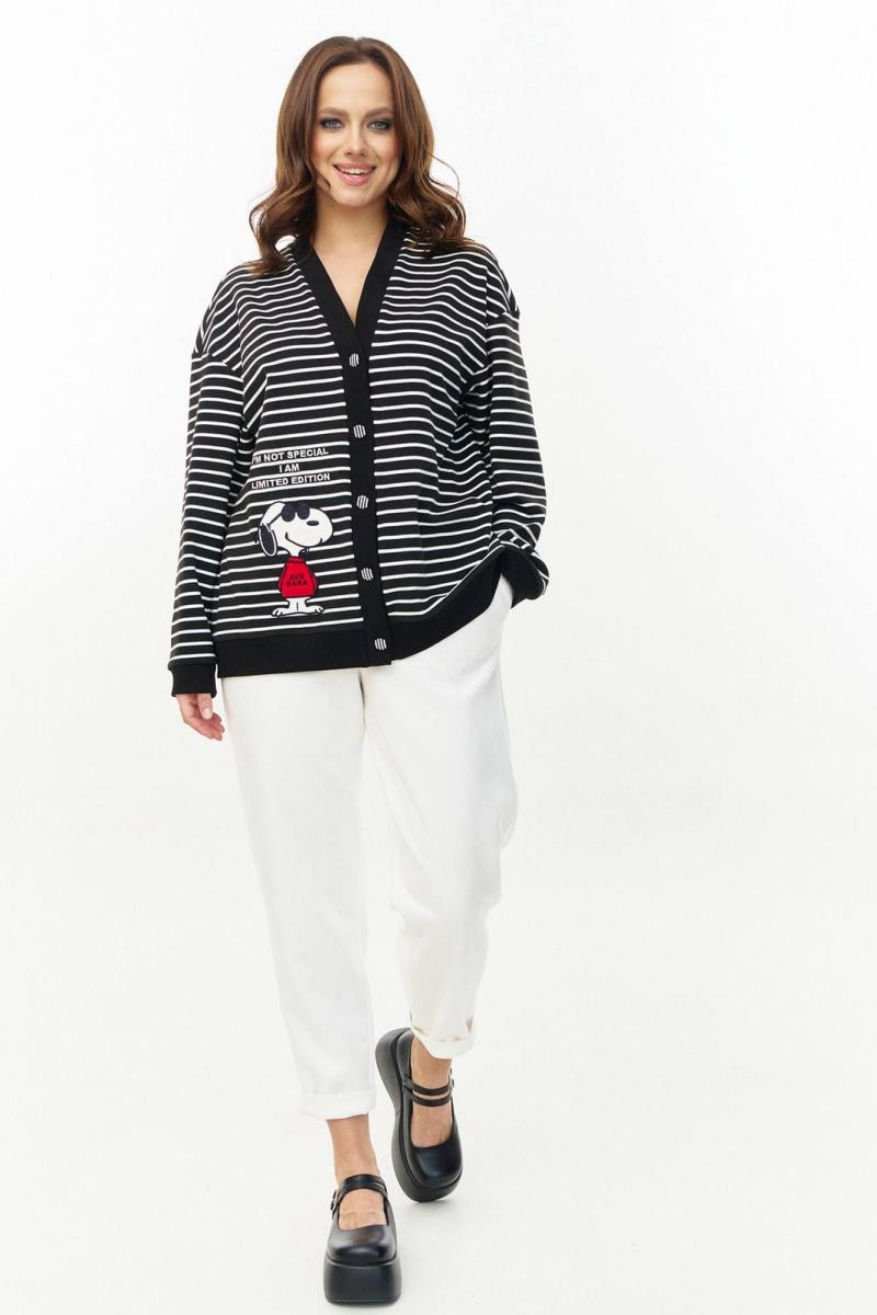 Кардиган из мягкого флиса с густым коротким ворсом, свободного силуэта, с застежкой на пуговицы спереди. Планки и манжеты из отделочного трикотажа. Рукав длинный, линия плеча спущена. На переде справа авторская вышивка с аппликацией.