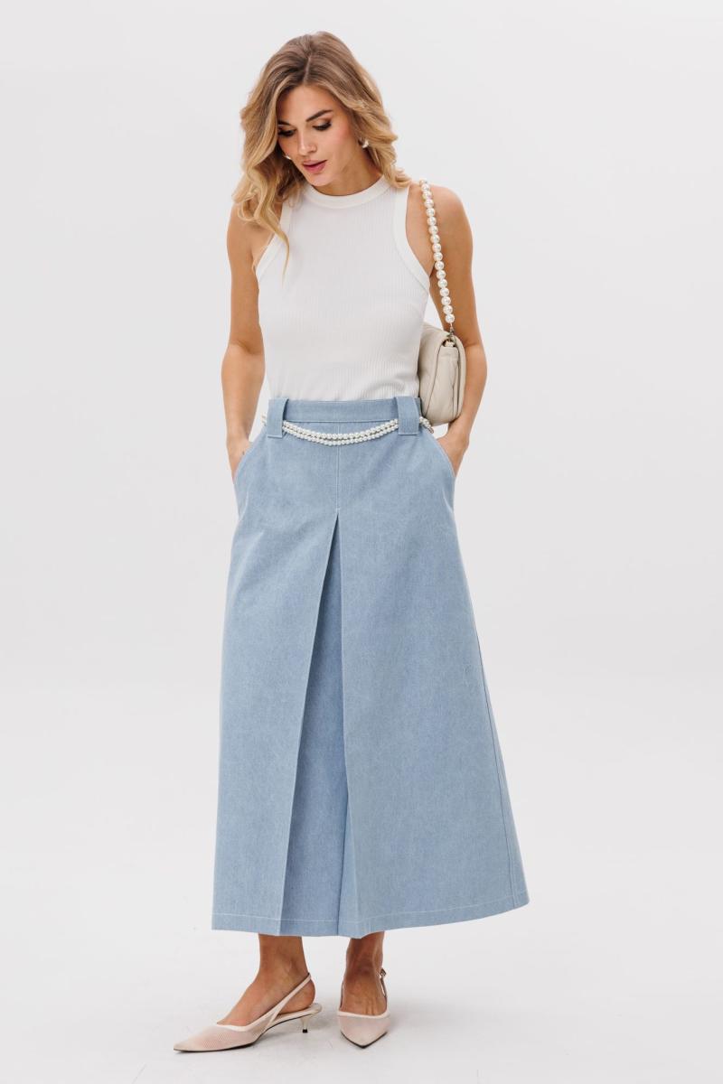 Джемпер выполнен из трикотажного полотна в рубчик. Джемпер приталенного силуэта, длиной выше линии бедер. Перед и спинка цельные. Горловина округлой формы. Плечевой шов заужен. Горловина и пройма обработаны бейками из основной ткани. Длина джемпера: р. 42-46 - 56 см, р. 48-54 - 58.