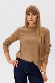 Лонгслив прямого кроя с втачным спущенным рукавом. Горловина широкая - от плеча до плеча. Исполнен в трикатажной ткани. Крой свободный, комфортный и стильный.