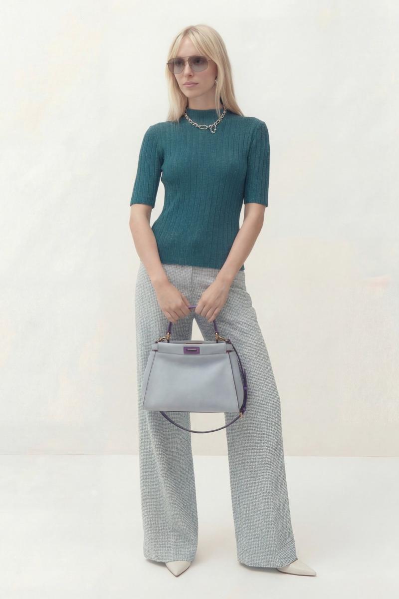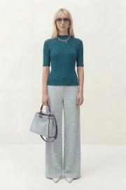 Джемпер полуприлегающего силуэта, выполнен из трикотажного полотна. Рукав в тачной, длина рукава до линии локтя. По горловине стойка. Джемпер: Длина по спинке от высшей точки горловины: 58 см Длина рукава: 28 см ОГ: 86-90-94-98 см (размер 42-44-46-48)