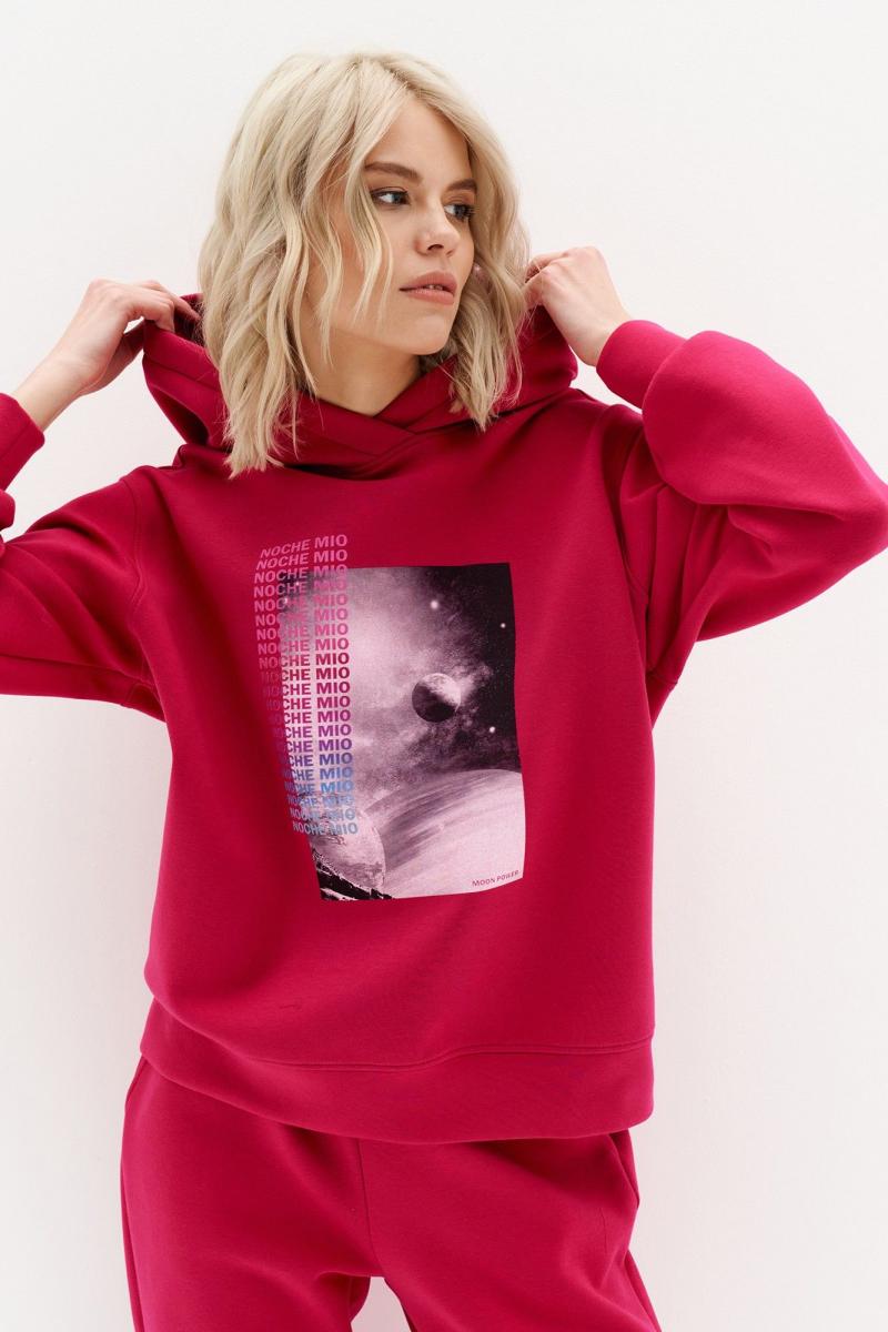 Худи из плотного трикотажного полотна премиального качества с дизайнерским принтом. На фото с брюками под артикулом 4.032 SUN.
