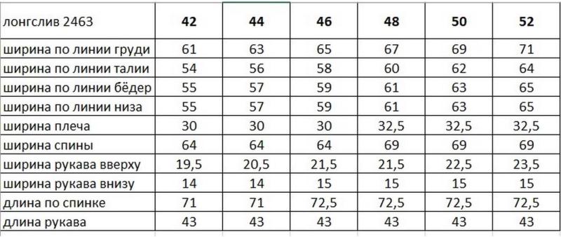 Таблица размеров