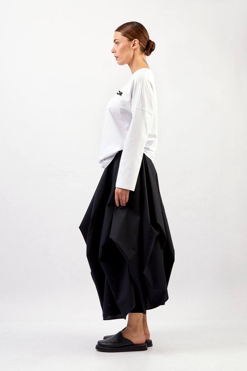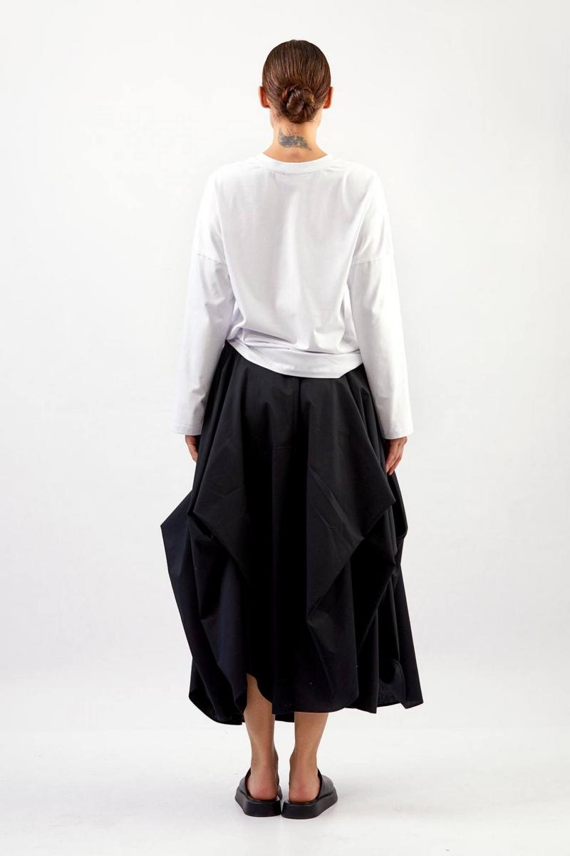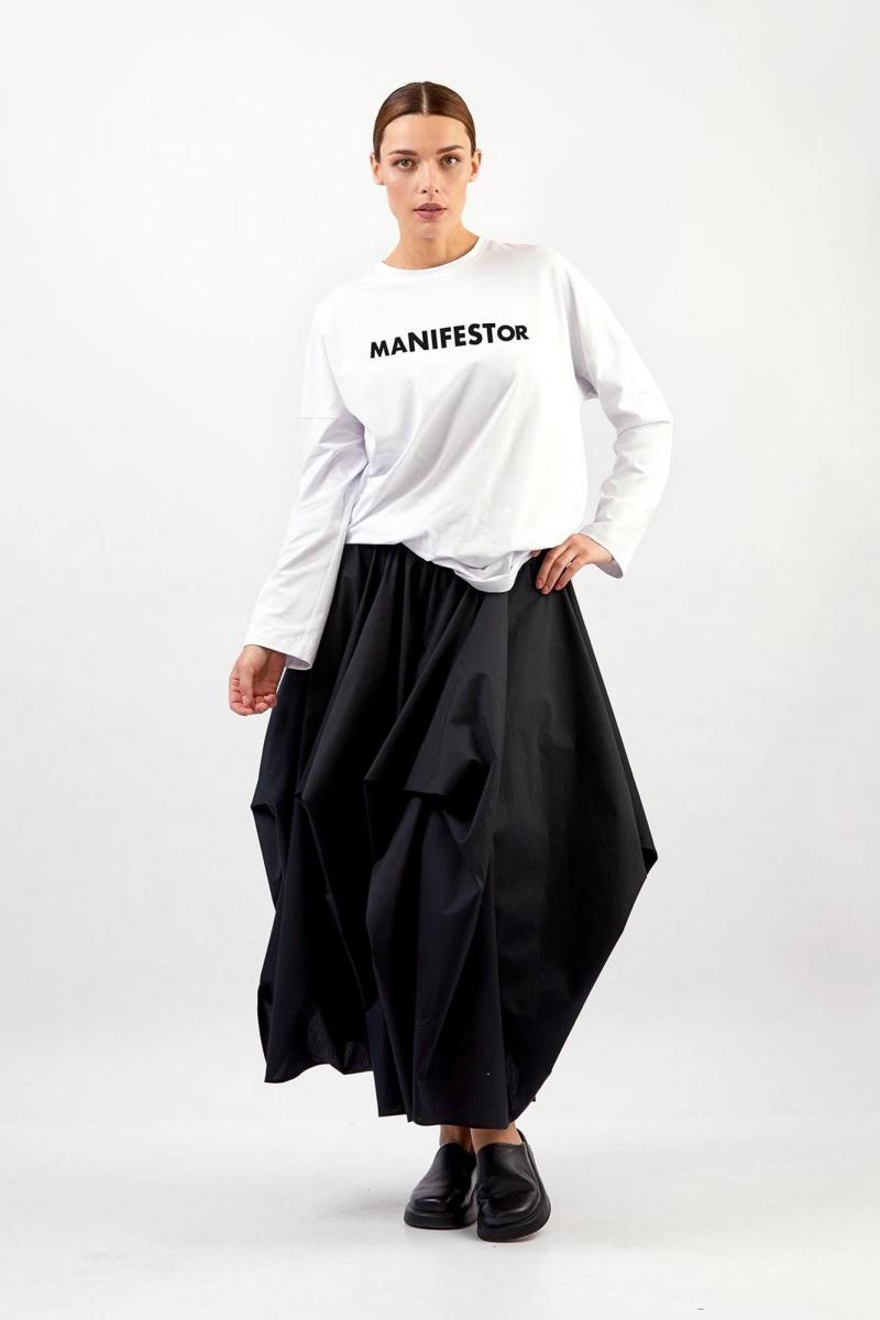 Лонгслив - прямой силуэт - спущенная линия плеча - круглый вырез горловины с планкой - длинные рукава, расширенные к низу - фактурный замшевый принт спареди