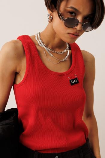 Также в моду вошли не только классические цвета: красный, черный и белый. В моде находятся бледно-розовые, сиреневые и фиолетовые оттенки, а также салатовый и сине-фиолетовый. Если использовать топ в качестве блузы под пиджак, то это может выглядеть стильно и современно.