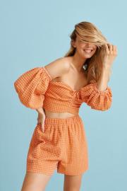 Укороченный топ выполнен из фактурного полотна. Утонченная, смелая деталь Вашего образа. Характеристики: укороченный топ, фигурный вырез горловины, по переду декоративная сборка с кулисой, рукав в изделии спущен, по верху и по низу рукава резинка, по спинке резинка со сборкой, застежки в изделии нет. Длина по спинке 19 см, длина рукава 41 см.