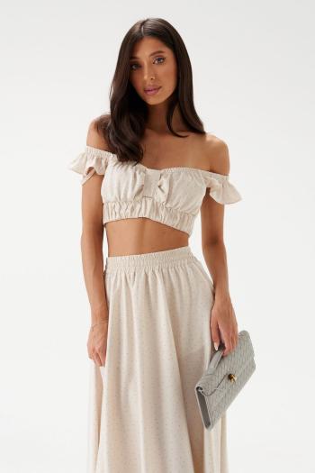 Топ выполнен из полупрозрачного полотна ажурной вязки. Характеристики: укороченный, низ и верх изделия на резинке. Длина 22 см.