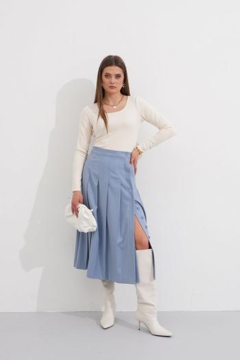 Топ, выполнен в корсетном стиле из джинсовой хлопковой ткани с перламутровым напылением. По спинке застежка на разъемную металлическую молнию.