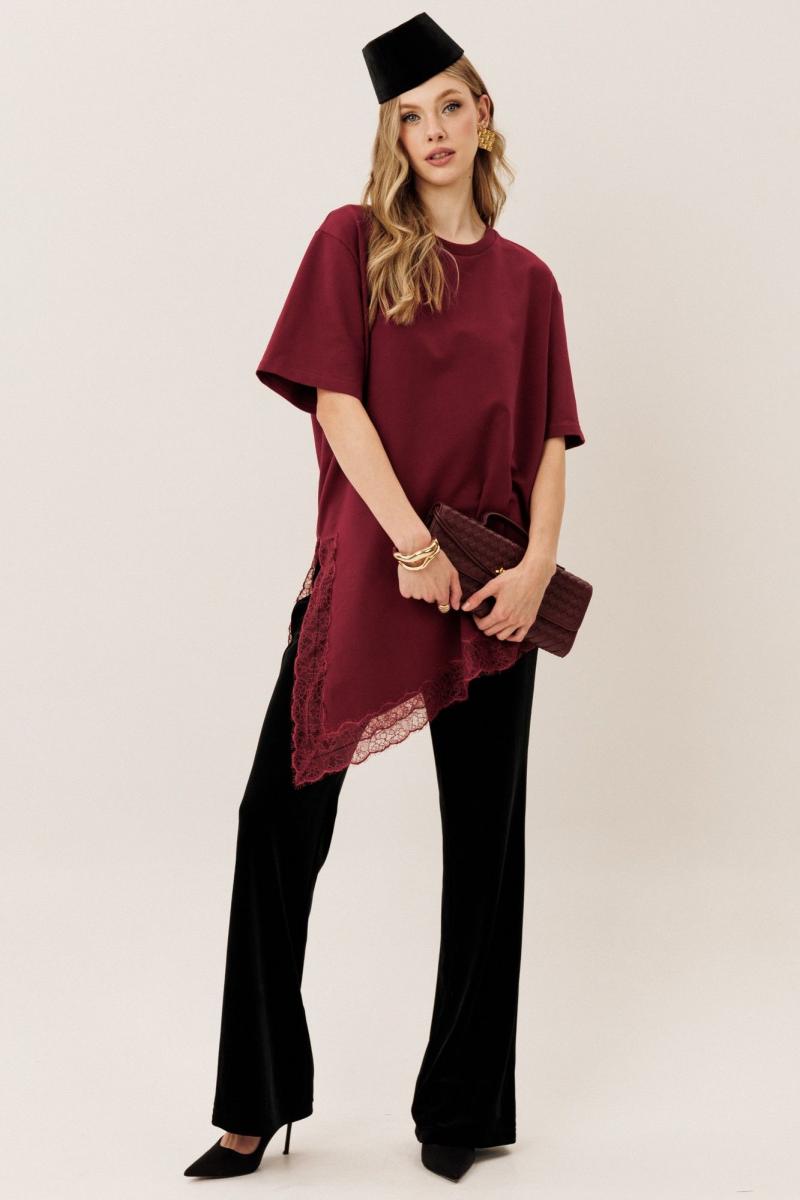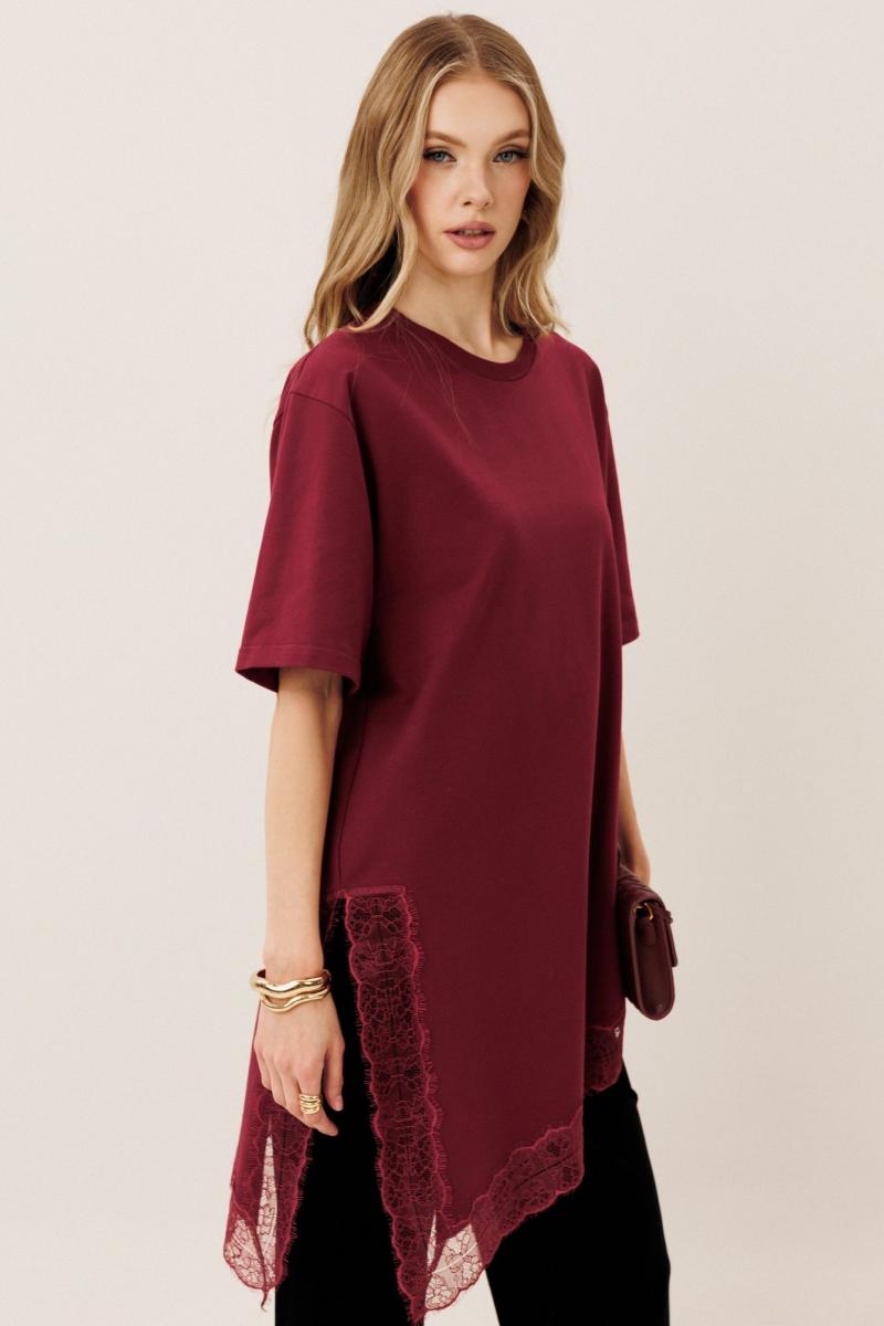 Ассиметричный крой+трендовое кружево = базовая футболка уже не базовая! Футболка: прямой силуэт oversize круглая горловина короткий рукав ассиметричный низ с кружевом Полуобхват груди футболки: 42 р - 56 см, 44 р - 58 см, 46 р - 60 см, 48 р - 62 см, 50 р - 64 см Длина рукава в футболке: 25 см Длина по спинке от горловины: 82 см