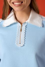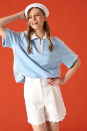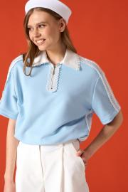 Поло из хлопкового трикотажного полотна 3-ёхнитка. Застежка на молнию. Декорирован хлопковыми тесьмами. Воротник из хлопка. 42-44 р-р ОГ 106-108 см 46-48 р-р ОГ 110-112 см Состав 100% хлопок