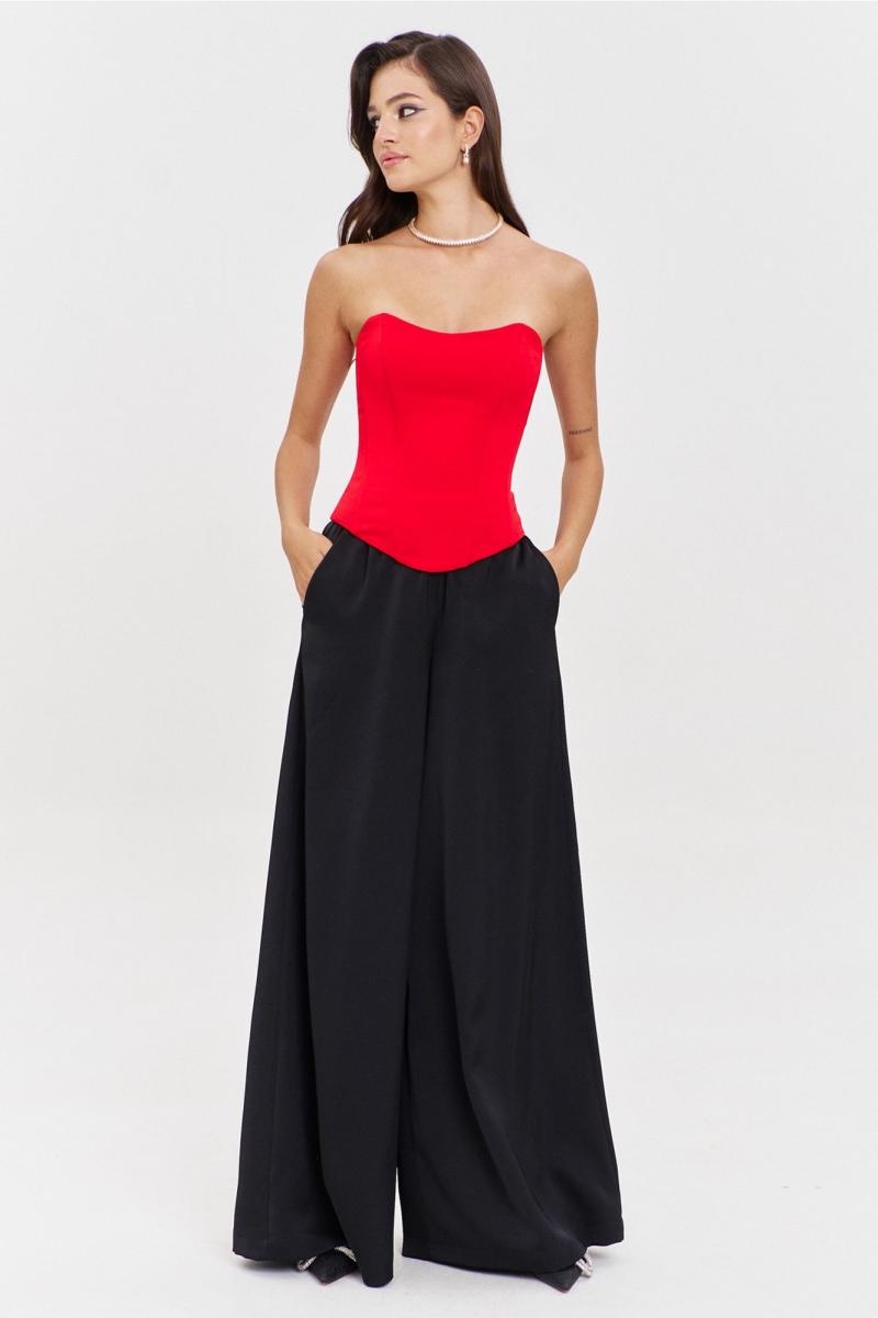 Корсет женский, прилегающего силуэта, длиной ниже талии с фигурной линией низа. Перед и спинка с рельефами, по рельефам вставлен регилин. Корсет по спинке с люверсами и шнуровкой.