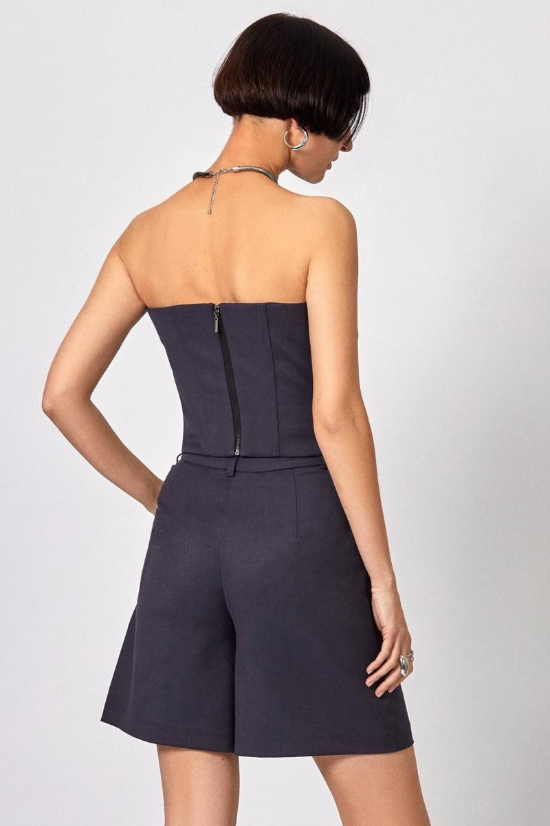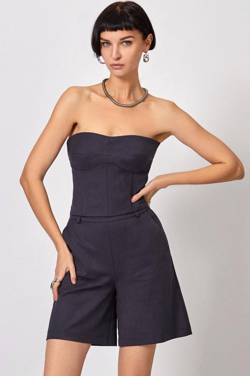 Топ: - прилегающий силуэт - на корсетных косточках - по спинке молния - верх переда усилен поролоновыми чашками