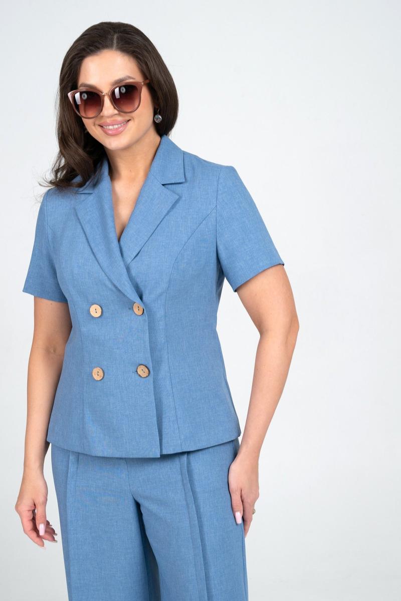 Жакет полуприлегающего силуэта, с двух-бортной застёжкой на петли, пуговицу и с внутренней застёжкой на потайную петлю и пуговицу.
